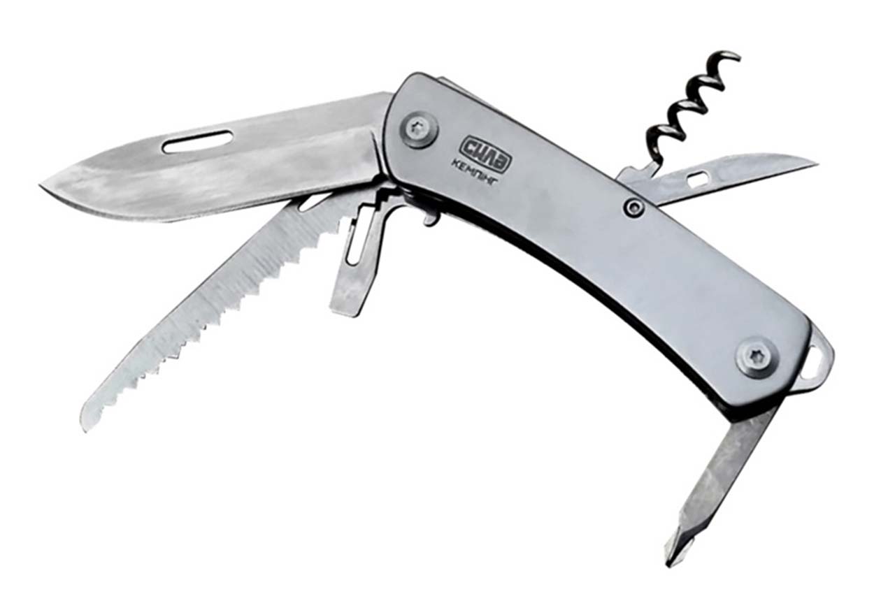 Ніж багатофункціональний Сила 960850 9-в-1 - якісний та надійний ручний інструмент, який має бути у кожного любителя подорожей, риболовлі та мисливства. Він не займає багато місця та може безпечно переноситись у туристичному рюкзаку. Розкладний ніж також стане незамінним помічником у домашній майстерні чи на дачній ділянці.