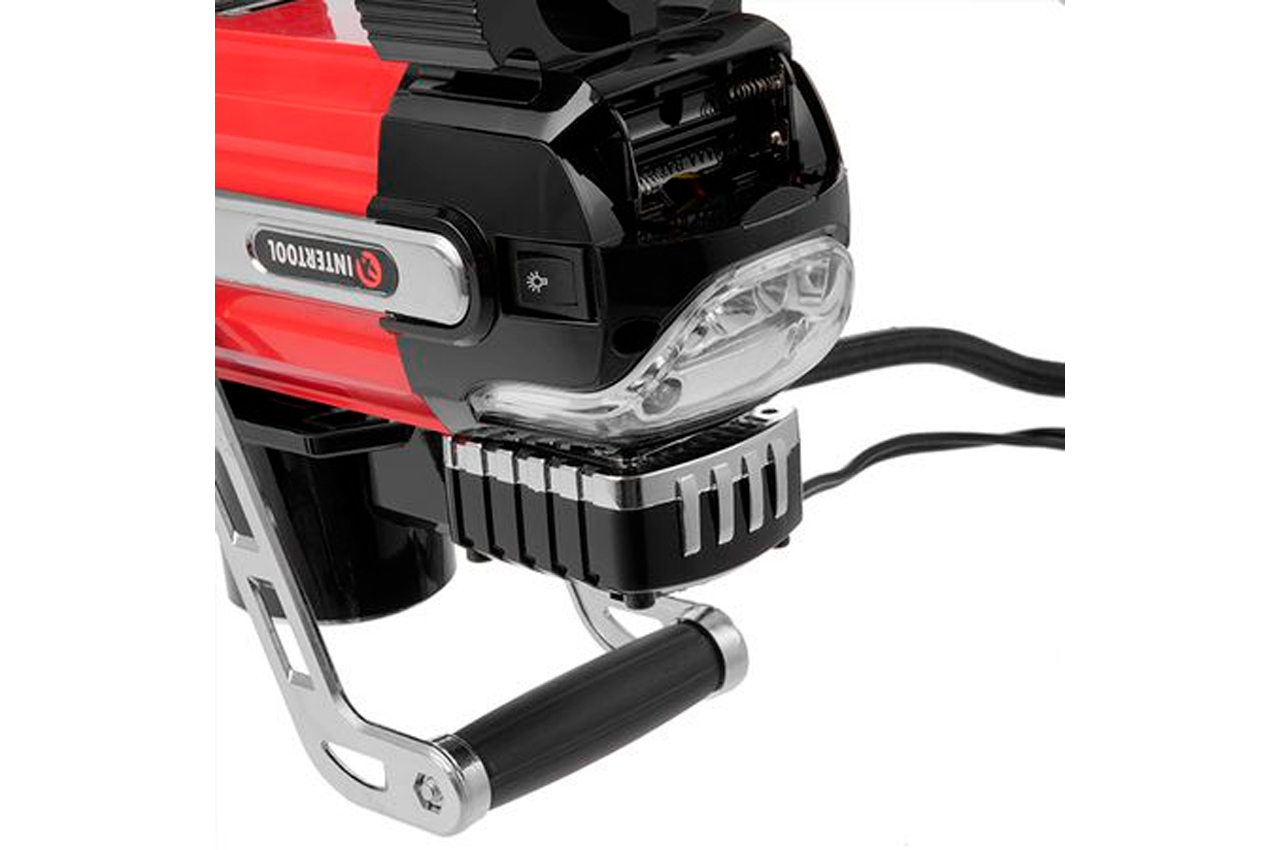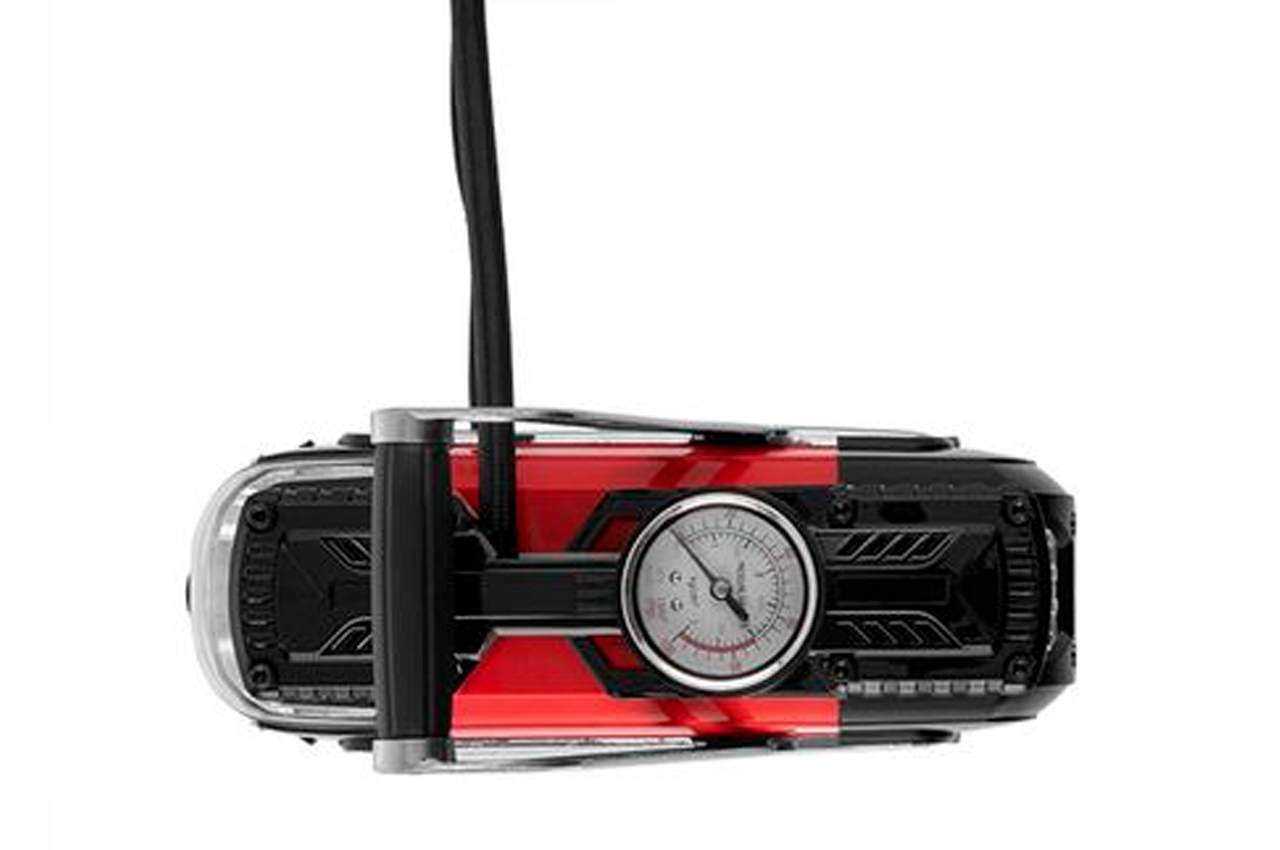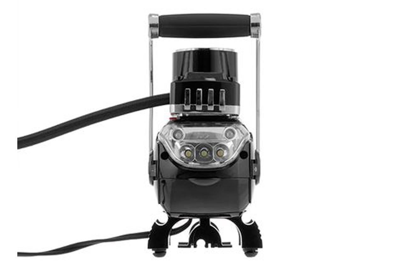 Робочий тиск до 7 атмосфер дозволить накачати до робочого стану колеса автомобіля, мотоцикла або велосипеда, а також м'ячі, матраци, круги і будь-які інші надувні вироби завдяки набору насадок, який поставляється в комплекті. Точний контрастний манометр для контролю поточного тиску. Вбудований яскравий LED-ліхтарик (працює від звичайних батарейок). Гнучкий шланг в тканинної оболонці довжиною 68 см довговічний і зручний в роботі. Гумові антивібраційні ніжки зроблять роботу компресора максимально тихої. Харчування від автомобільної мережі 12В. Два циліндра 30 мм. Максимальний струм: 15 А; Максимальний тиск: 7 бар; Довжина шланга: 63 см; Продуктивність: 40 л / хв; Напруга живлення: 12 В; Особливості: діаметр поршня 2х30 мм