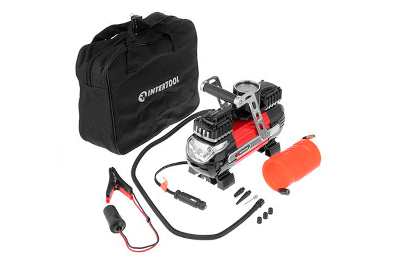 Компресор автомобільний Intertool - 7бар x 40л/хв двоциліндровий