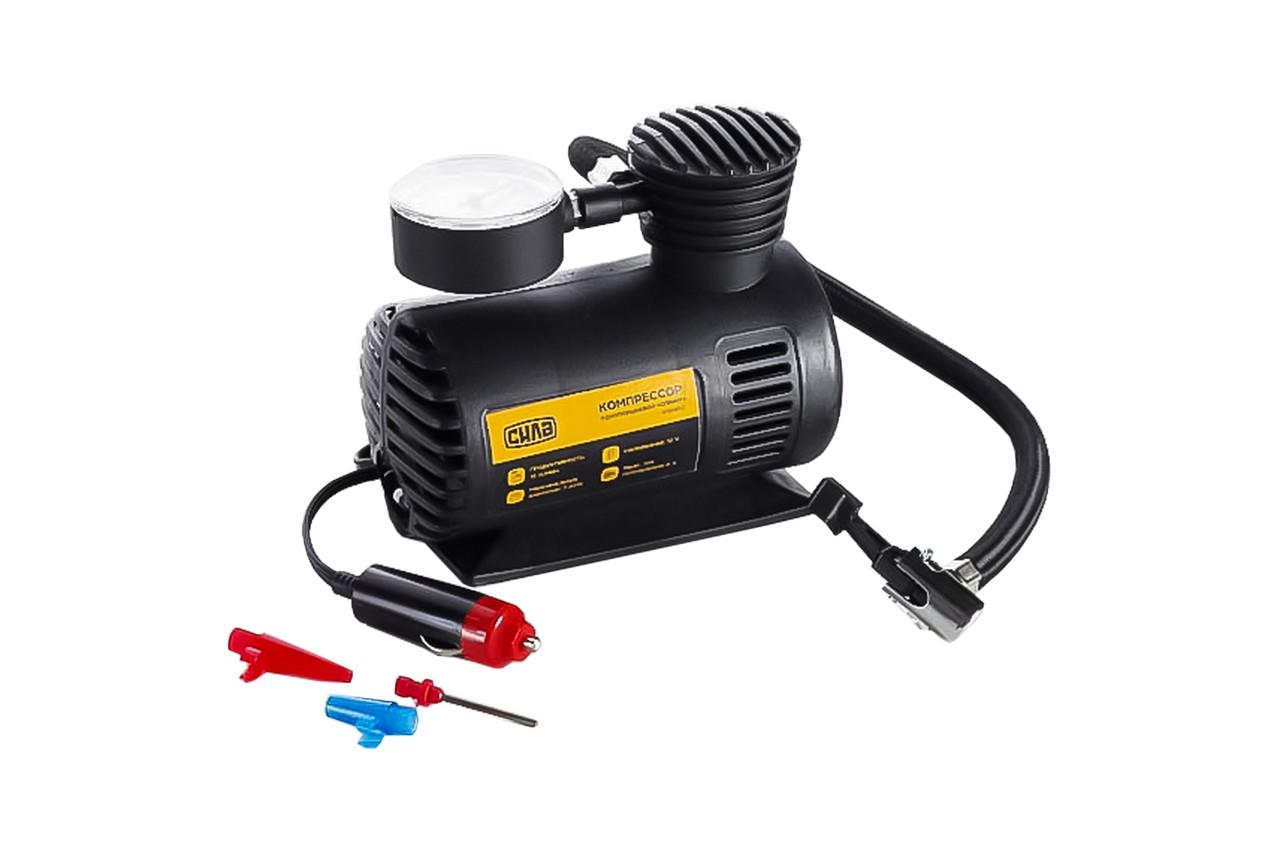 Автомобільний компресор Сила 12В х 7bar х 15л / хв однопоршневою застосовується для накачування шин різної техніки і гумових виробів. Компресор має компактний розмір, а також зручну складну ручку для його переміщення. Гумові упори виключають перекидання приладу під час функціонування. У верхній частині розташований манометр для контролю тиску повітря в шинах. До компресора додається зручний чохол на застібках. У такому чохлі прилад не тільки зручно зберігати, але ще і транспортувати його. Для нього завжди знайдеться місце в відсіку багажника будь-якого автомобіля. Довжина мережевого проводу: 3 м; Максимальна тривалість безперервної роботи: 15 хв; Напруга: 12 В; Тип підключення: Прикуриватель автомобіля