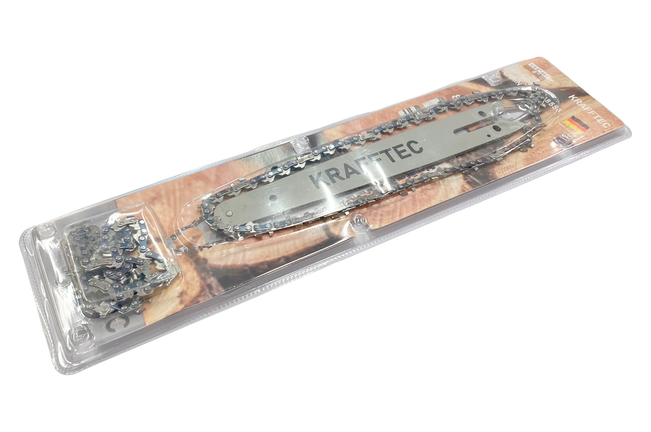 Набір для акумуляторної пилки включає шину довжиною 8" (20 см) та два ланцюги з кроком 1/4" і 48 зубів. Призначений для заміни або оновлення комплектуючих акумуляторних пилок, забезпечує ефективне та безпечне розпилювання деревини.