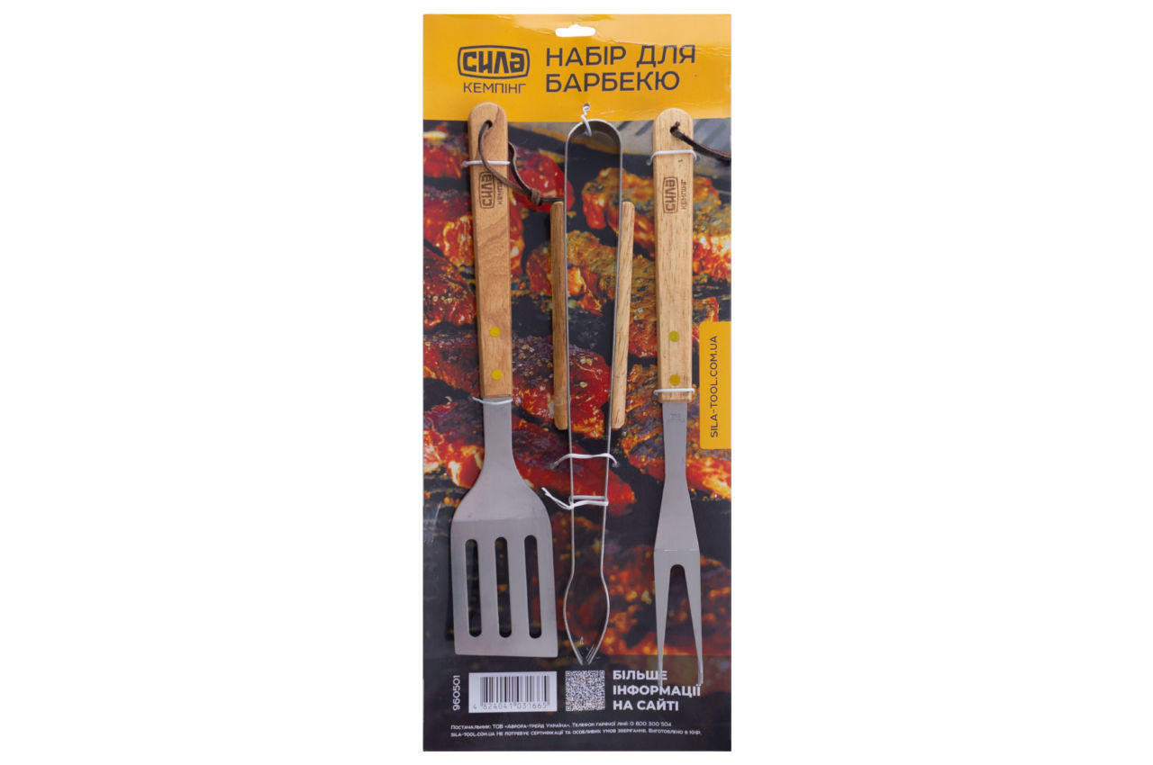 Набір для гриля Сила - 380 мм лопатка x вилка x щипці (3 од.)