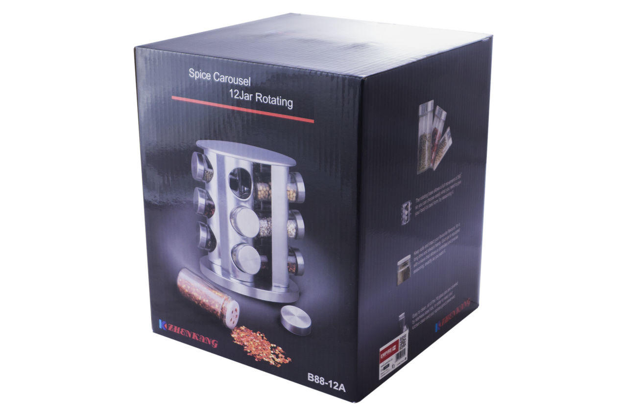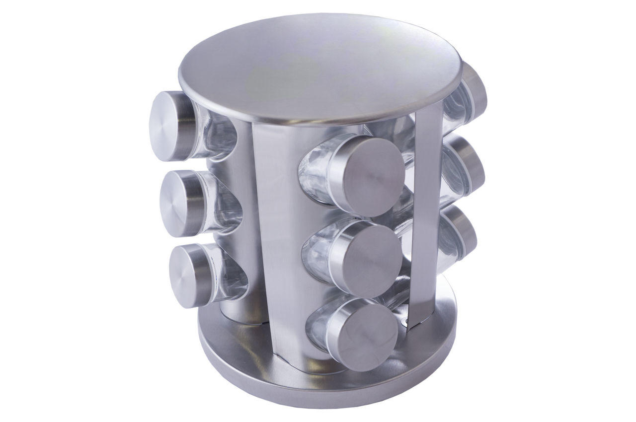 Набір для спецій на підставці 3164 - найзручніший спосіб зберігання запашних приправ для перших і других страв. Скляні ємності мають щільно закриваються кришки, тому ароматні спеції не втратять запаху, а рідкі приправи НЕ протекут. Баночки для спецій круглої форми, не займуть багато місця на полиці і в холодильнику.