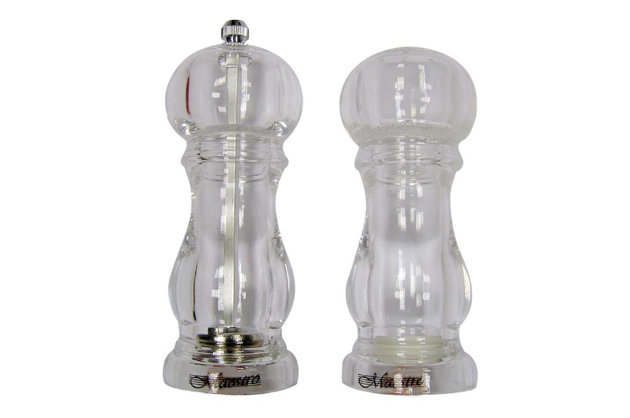 Набір для спецій Maestro MR 1621 складається з 2х предметів: сільнички та подрібнювача для перцю. Виготовлений із прозорого екологічно чистого акрилу.