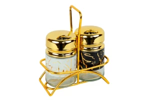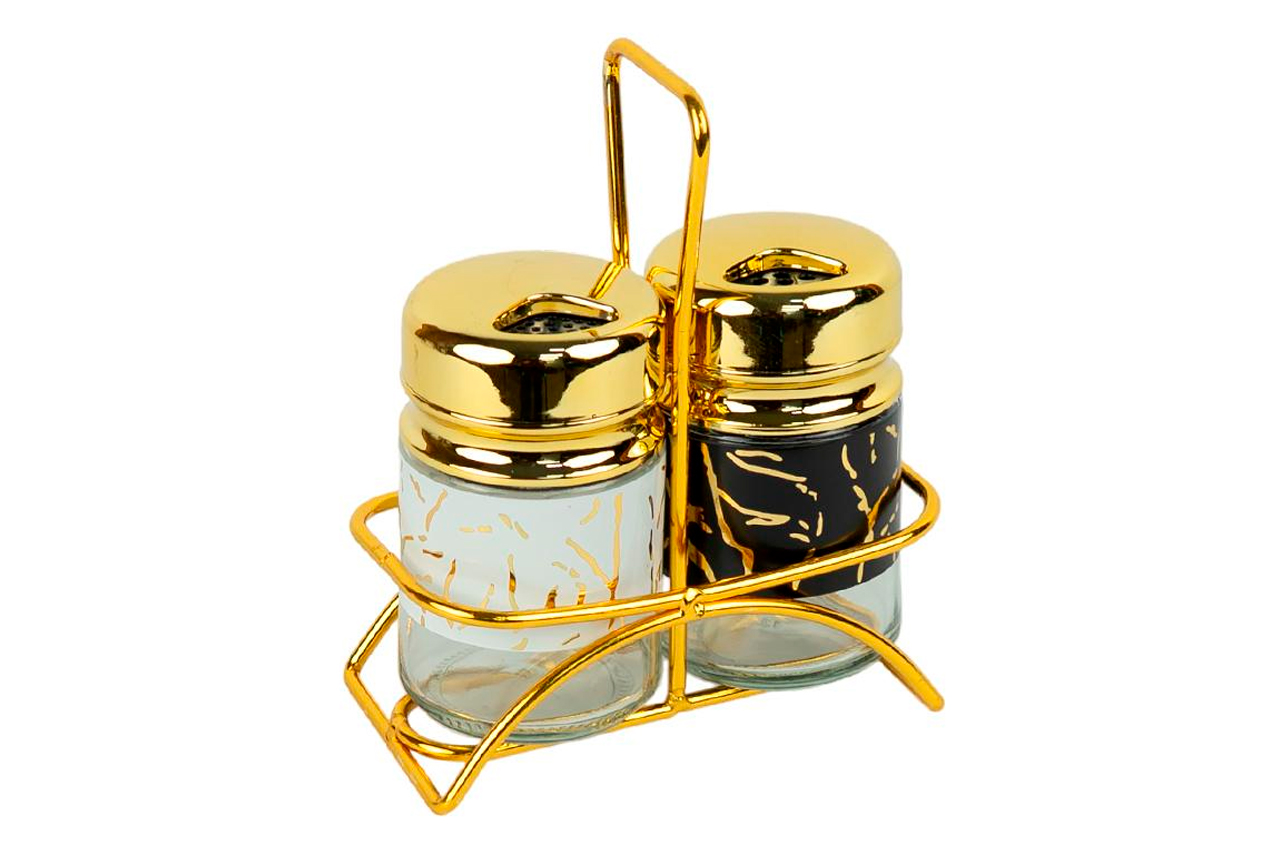 Набір для спецій сільниця і перечниця на підставці, золотистий - 100мл
