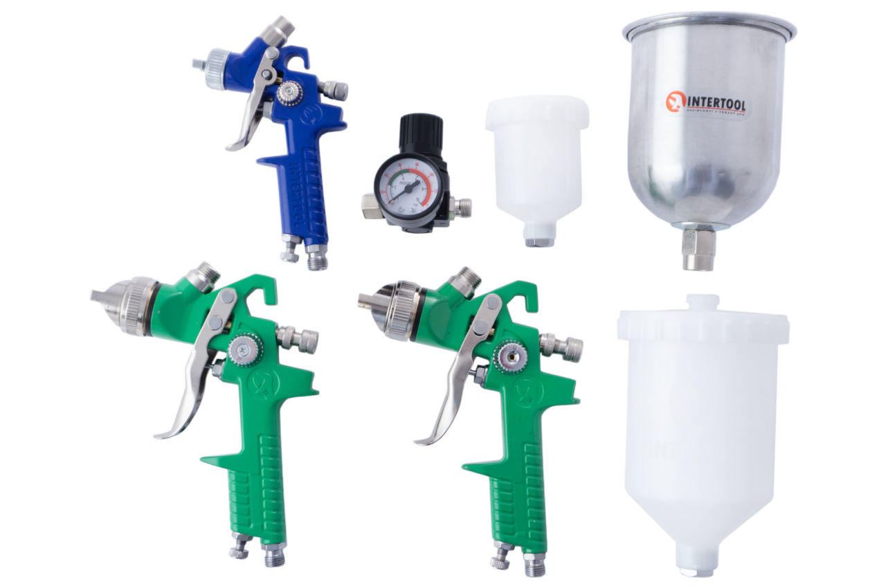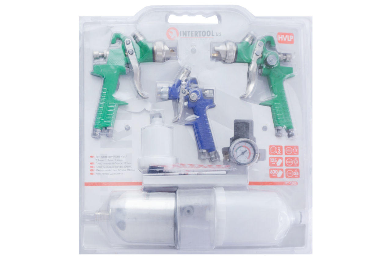 Набір фарбопультів HVLP Intertool - 125-600 мл x 0,8-1,3-1,7 мм верхній бак