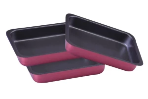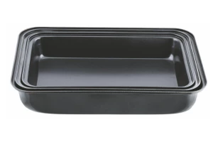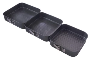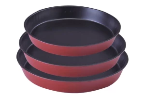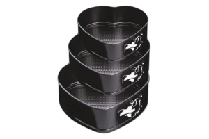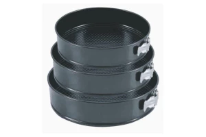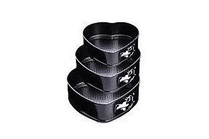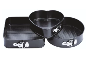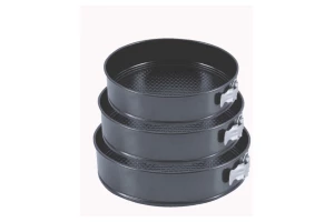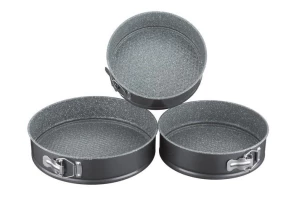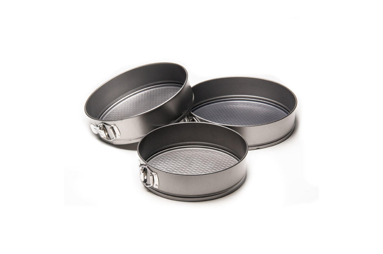 Набір з трьох круглих форм для випічки. Підходить для посудомийних машин. Антипригарне покриття для зручного використання і легкого догляду. Матеріал - вуглецева сталь.