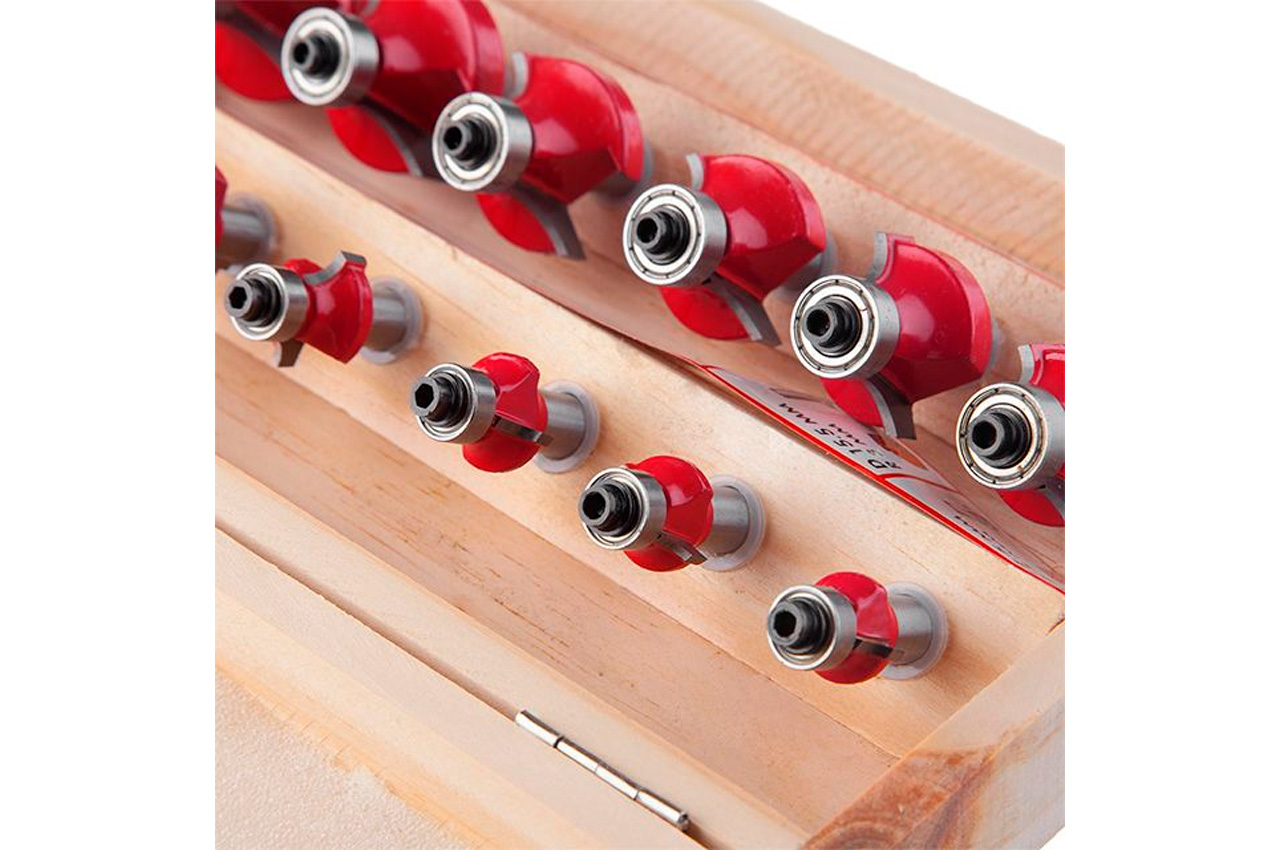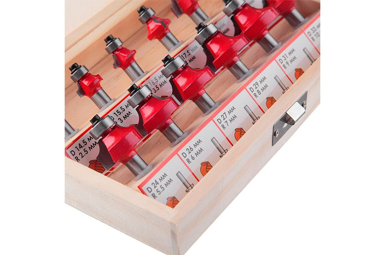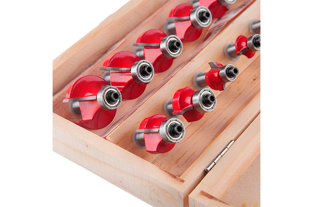 Калювальні фрези "Intertool", призначені для створення різних профілів по кромці дерев'яної заготовки. Наявність підшипника на кожній фрезі дозволяє обробляти профіль заготовки без застосування додаткового обладнання та упору фрезерного верстата на опорну напрямну. З їх допомогою виготовляють фігурні ніжки столів і стільців, шаф і декоративних виробів. Всі фрези (12 шт.) Укомплектовані в спеціальний дерев'яний кейс, який зручний як для зберігання, так і для транспортування. Діаметр фрез 15,5 - 33 мм. Діаметр хвостовика 8 мм. Твердість за шкалою Роквелла: 89 HRC; Кількість в наборі: 12 од .; Діаметр фрези: 15,5-33 мм; Діаметр хвостовика: 8 мм; Комплектація: фрези, дерев'яний кейс, шестигранний ключ для заміни підшипників