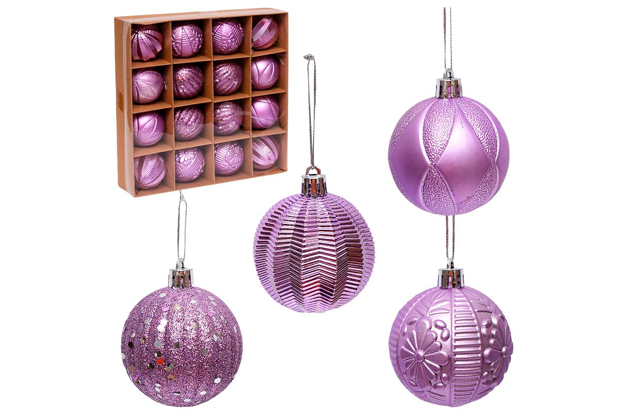 Набір іграшок ялинкових бузкових у коробці 6см (16шт)