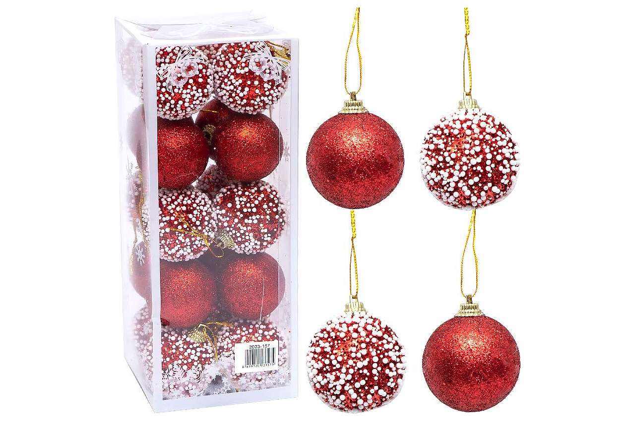 Набір іграшок ялинкових червоних засніжених 5см (20шт)