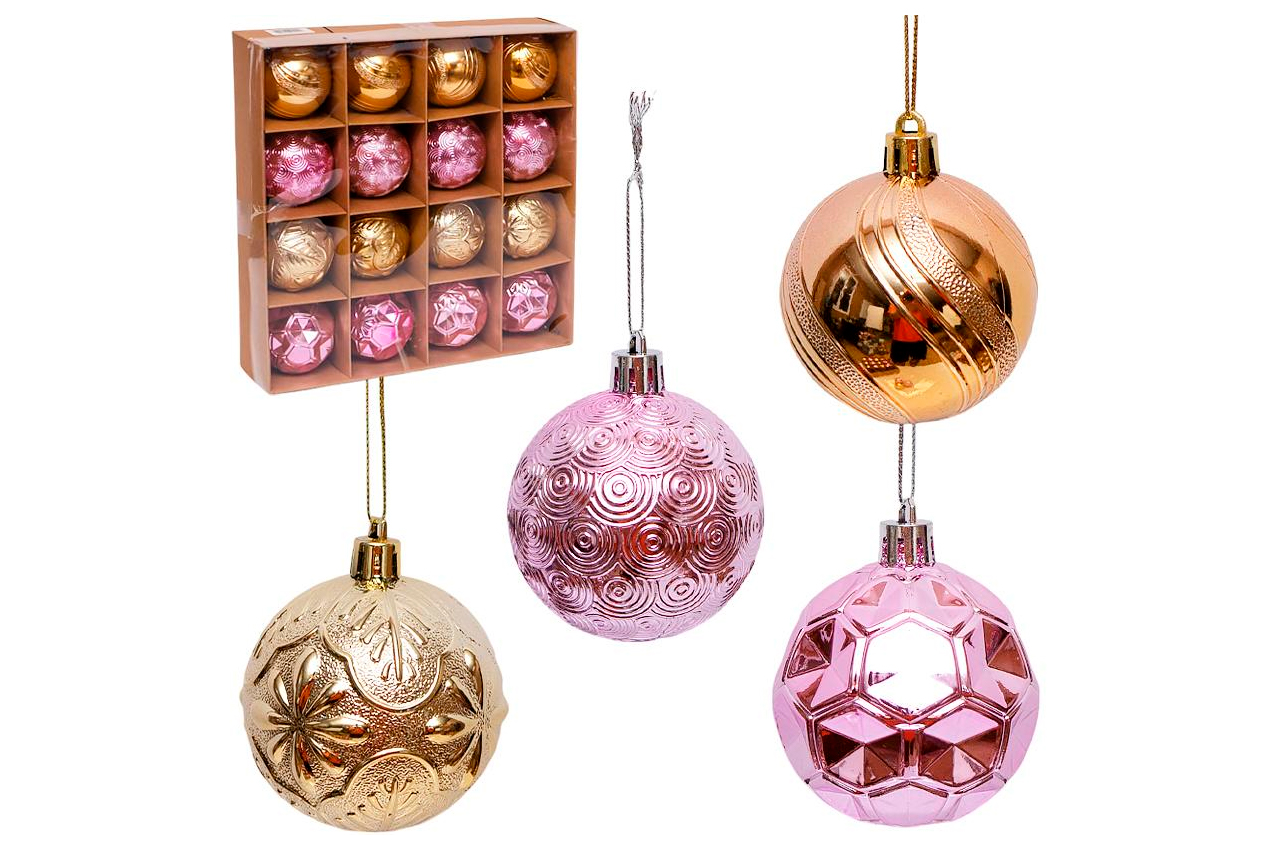 Набір іграшок ялинкових рожево-золотих у коробці 6см (16шт)