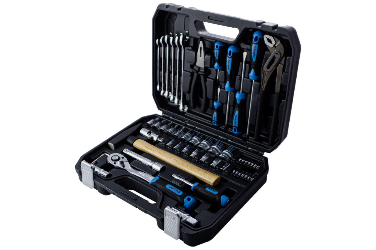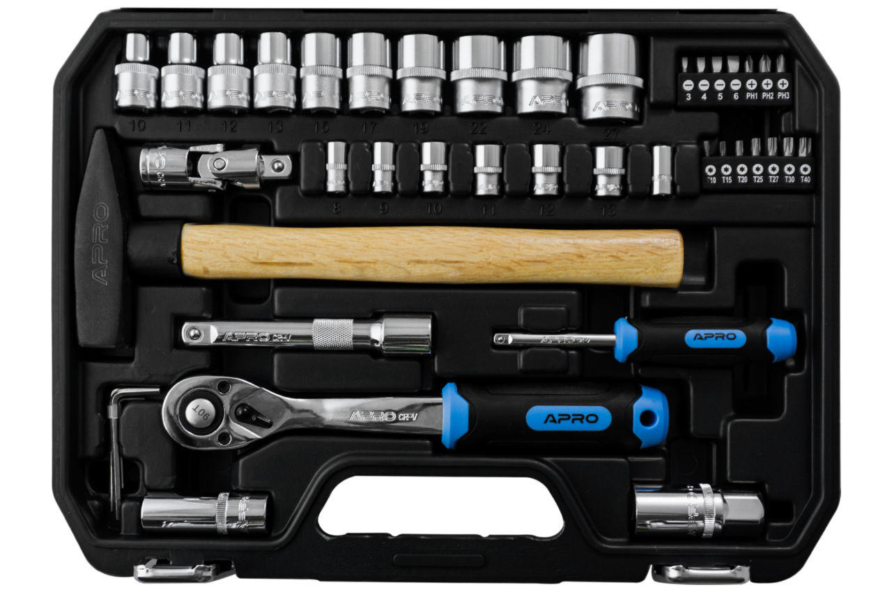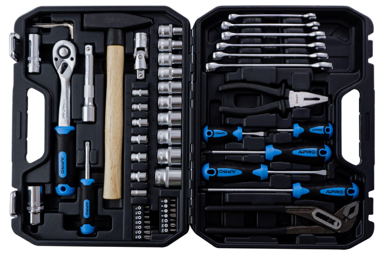 Набір інструментів APRO 251456 – універсальний набір для ремонтно-монтажних робіт, що складається з 56 предметів. Всі інструменти поміщені в зручний пластиковий кейс, що не займає багато місця і дозволяє зберігати інструментарій у первісному вигляді. Всі інструменти виготовлені з якісної хром-ванадієвої сталі, не бояться корозії та стійкі до різних механічних пошкоджень. Інструмент оснащений прогумованими ручками, що не ковзають навіть під час інтенсивної роботи. У комплекті йде пластиковий кейс, для зручного зберігання та транспортування інструменту.