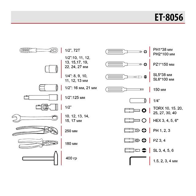 Набір інструменту Intertool - 1/2" 56 од. Storm (ET-8056)2 844,00