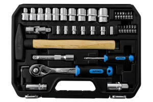 Набори інструментів STORM - це нове слово в підтримку якості і багатофункціональності! Завдяки своїй практичності ідеально підходять для автолюбителів і домашніх майстрів. Трещеточний рукоятка: 1/2 "72 зуба; Габаритні розміри: 380 х 290 х 80 мм; Матеріал кейса: ударостійкий пластик; Кількість одиниць в наборі: 56 од.