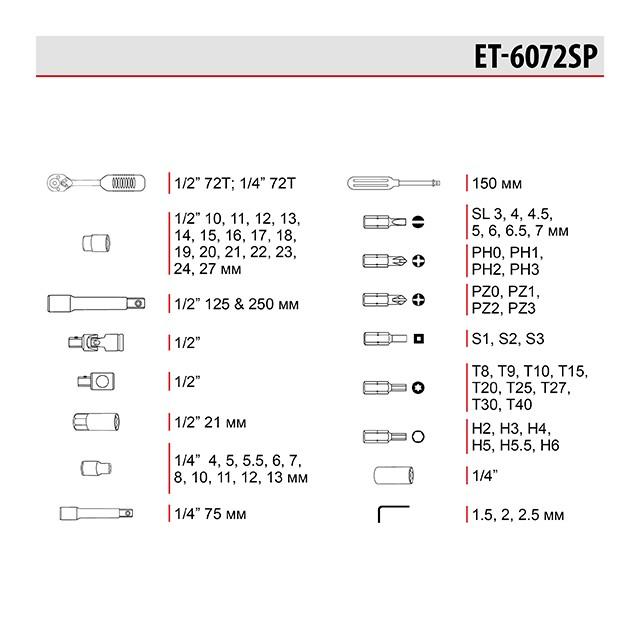 Набір інструменту Intertool - 1/4" , 1/2" 72 од. SemiPro ET-6072SP