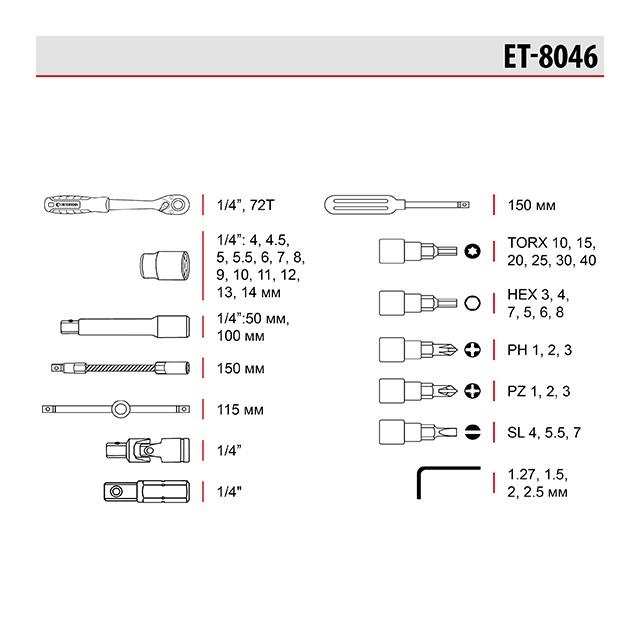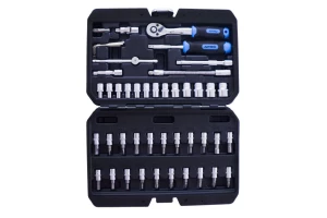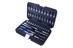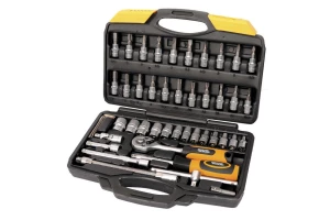 Набори інструментів STORM - це нове слово в підтримку якості і багатофункціональності! Завдяки своїй практичності ідеально підходять для автолюбителів і домашніх майстрів. Особливості: Інструмент на довгі роки. Всі комплектуючі виготовлені з високоякісних марок сталі. Завдяки міцності і сучасним технологіям виробництва інструменти відрізняються тривалим терміном служби, стійкістю до підвищених навантажень, а також високою точністю виготовлення. Два шару нікелевого покриття вбережуть від появи іржі. Надійна Трещеточний рукоятка. Механізм тріскачки і все його комплектуючі виготовлені в Тайвані, в поєднанні з Cr-V сталлю - це міцний і надійний інструмент, з м'яким ходом храпового механізму. Зручне зберігання. Весь інструмент укомплектований в надійний, міцний кейс з металевими замками і посиленими петлями. Яскравий сучасний дизайн кейса нікого не залишить байдужим! Набори інструментів №1 в Україні. За результатами незалежного рейтингового дослідження в рамках проекту Українська Народна Премія в 2018, 2019 роках. Торцеві головки і тріскачка Механізм тріскачки на 72 зуба виготовлений в Тайвані. Відрізняється плавним ходом храпового механізму, а також міцність і зносостійкість. Швидкий скидання головок і наявність реверсу спростять і в безліч разів прискорять роботу майстра. Тріскачка має вигнуту рукоятку для роботи у важкодоступних місцях. Ручка з гумовою накладкою для максимального хвата, не ковзає і не випадає з Ваших рук. Головки туго сидять на посадковому квадраті тріскачки 1/4 ", не спадають і щільно прилягають до поверхні кріплення. На кожній головці нанесені насічки для запобігання ковзання в брудних руках або в рукавицях. Кейс Всі інструменти упаковані в компактний ударостійкий кейс з надійними металевими замками. Комплектуючі міцно зафіксовані на своїх посадочних місцях і не випадають при транспортуванні. Завдяки невеликим габаритам кейса (220 * 160 * 60 мм) набір поміститься в будь-який коморі, бардачку або на полиці в гаражі. Сучасний яскравий дизайн точно не залишить нікого байдужим! Матеріал виготовлення Всі інструменти виготовлені з міцної і витривалою Cr-V стали. Головки і тріскачка з Cr-V 50BV30, відрізняються тривалим терміном служби, мають запас міцності і стійкі до навантажень. Двошарове нікелеве покриття забезпечує антикорозійні властивості інструментів. Кожна біта виконана зі сталі Cr-V 6150 з відмінними показниками твердості і пружності в своєму сегменті. Перевага комплекту Комплектація набору з приводом 1/4 "знадобиться для виконання переважної більшості робіт, пов'язаних з ремонтом обладнання, авто-, мото-, велотехніки, а також інших робіт в побуті і в гаражі кожного домашнього майстра. У комплекті найпопулярніші розміри торцевих головок, а також кардан, Т-подібний комірець і гнучкий подовжувач для відкручування і закручування кріплень в важкодоступних місцях. Різні типи біт знадобляться для роботи зі шліцами, які часто використовують в меблевій промисловості, в приладобудуванні і ін. Комплектація Трещеточний рукоятка 1/4 ", 72 зуба, реверсивних; Головка шестигранна торцева 1/4", 13 шт .: 4, 4.5, 5, 5.5, 6, 7, 8, 9, 10, 11, 12, 13, 14 мм; Подовжувач 1/4 "50, 100 мм; Гнучкий подовжувач 150 мм; Вороток 115 мм; Кардан 1/4"; Адаптер для шуруповерта 1/4 "; Тримач 1/4 "для головок і біт 150 мм. Біти: TORX 6 шт .: T10, T15, T20, T25, T30, Т40; HEX 6 шт .: 3, 4, 5, 6, 7, 8 мм; PH 3 шт .: PH1, PH2, PH3; PZ 3 шт .: 