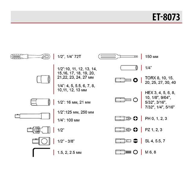 Набір інструменту Intertool - 1/4" x 1/2 73 од. Storm