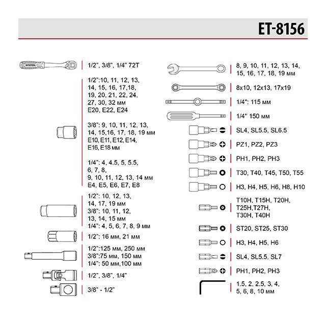 Набір інструменту Intertool - 1/4" x 3/8" x 1/2" 156 од. Storm