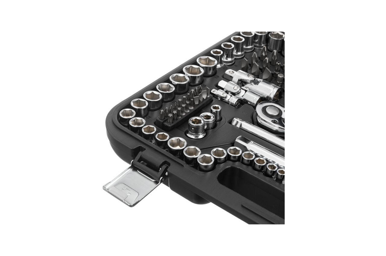 Набори інструментів STORM - це нове слово в підтримку якості і багатофункціональності! Завдяки своїй практичності ідеально підходять для автолюбителів і домашніх майстрів. Широкий вибір інструментів дозволяє впоратися майже з будь-яким видом кріплення, що дуже виручає при раптових поломок в дорозі і заміні деталей в гаражі. Комплектація Трещоточна рукоятка 1/2", 72 зуби, реверсійна; Головка шестигранна торцева 1/2", 17 шт.: 10, 11, 12, 13, 14, 15, 16, 17, 18, 19, 20, 21, 22, 24, 27, 30, 32 мм; Головка E-тип (Torx) 1/2", 2 шт.: Е20, Е24; Головка шестигранна подовжена 1/2", 5 шт.: 16, 17, 18, 19, 22 мм; Головка свічкова 1/2", 2 шт.: 16, 21 мм; Подовжувач 1/2", 2 шт.: 125 та 250 мм; Кардан 1/2"; Перехідник 3/8” – 1/2”; Адаптер для біт 10 мм. Біти, 24 шт.: TX: 40, 45, 50, 55(10мм), 60(10мм), 70(10мм); TT: 40, 45, 50, 55(10мм), 60(10мм), 70(10мм); PH: 3, 4; PZ: 3, 4; SL: 8, 10, 12; HEX: 7, 8, 10, 12, 14. Г-подібні шестигранні ключі, 7 шт.: 1.27, 1.5, 2, 2.5, 3, 4, 5 мм. Трещоточна рукоятка 3/8", 72 зуби, реверсійна; Головка шестигранна торцева 3/8", 10 шт.: 10, 11, 12, 13, 14, 15, 16, 17, 18, 19 мм; Головка E-тип (Torx) 3/8", 6 шт.: E10, E11, E12, E14, E16, E18; Головка шестигранна подовжена 3/8", 6 шт.: 10, 11, 12, 13, 14, 15 мм; Свічкова головка 3/8", 18 мм; Подовжувач 3/8", 150 мм; Кардан 3/8"; Адаптер для біт 8 мм. Трещоточна рукоятка 1/4", 72 зуби, реверсійна; Головка шестигранна торцева 1/4", 13 шт.: 4, 4.5, 5, 5.5, 6, 7, 8, 9, 10, 11, 12, 13, 14 мм; Головка E-тип (Torx) 1/4", 5 шт.: E4, E5, E6, E7, E8; Головка шестигранна подовжена 1/4", 7 шт.: 4, 5, 6, 7, 8, 9, 10 мм; Подовжувач 1/4", 2 шт.: 50, 100 мм; Утримувач для біт, 150 мм; Вороток 1/4"; Кардан 1/4"; Головки з насадками 30 шт. HEX: 3, 4, 5, 6; SL: 4, 5.5, 6.5, 7; PH: 0,1,2; PZ: 0,1,2; TX: 8, 9, 10,15, 20, 25, 27, 30; TT: 8, 9, 10, 15, 20, 25, 27, 30. Адаптер для біт 1/4"x1/4" Біти, 20 шт.: SL: 6-8, 8-10, 8-10, 10-12; TX: 10, 15, 20, 25, 27, 30 PH: 0, 1, 2, 3 PZ: 1, 2, 3 S: S1, S2, S3