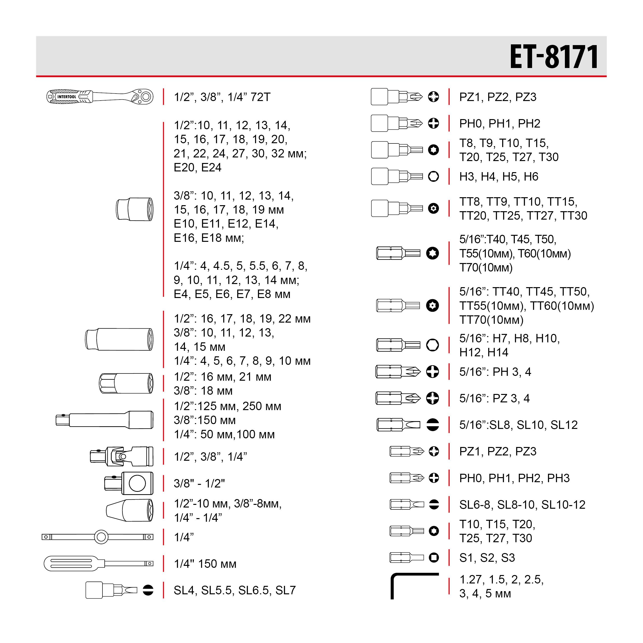 Набір інструменту Intertool - 1/4" x 3/8" x 1/2" 171 од. Storm