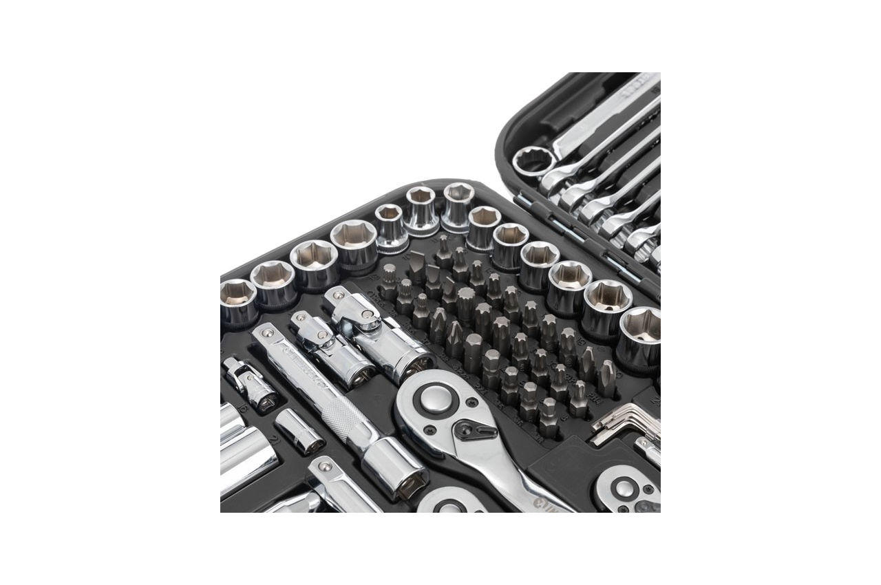 Набори інструментів STORM - це нове слово в підтримку якості і багатофункціональності! Завдяки своїй практичності ідеально підходять для автолюбителів і домашніх майстрів. Широкий вибір інструментів дозволяє впоратися майже з будь-яким видом кріплення, що дуже виручає при раптових поломок в дорозі і заміні деталей в гаражі. Основою набору є три тріскачки з посадочними квадратами: 1/2 ", 3/8", 1/4 ". Також в набір увійшли: шестигранні головки в діапазоні від 4 до 32 мм, допоможуть відкрутити майже будь-який болт або гайку. Подовжені головки від 4 до 22 мм знадобляться для роботи з високими шпильками гвинтів, а також у важкодоступних позначках. Головки Е-тип ( "зірочки") підходять для спеціальних видів болтів і гайок, часто застосовуються для ремонту сучасних автомобілів, розміри в діапазоні від Е4 до Е24. свічкові головки з улавливателем допомагають змінити свічки запалювання без особливих зусиль (16 мм і 21 мм). Подовжувачі, кардани, Г-образні шестигранні ключі дозволяють дістатися до самих важкодоступних місць. Комбіновані ключі в розмірах від 8 до 19 мм зі збалансованою рукояткою для виконання різнопланових робіт. Широкий вибір біт і головок з насадками (SL, PZ, PH, TORX, TT, HEX, M, TW, TQ, S) дозволяють працювати з різними кріпленнями в бортовий техніці, приладобудуванні, електротехніці, в меблевій сфері та ін. Комплектація Трещеточний рукоятка 1/2 ", 72 зуба, реверсивних; Головка шестигранна торцева 1/2", 15 шт .: 10, 11, 12, 13, 14, 15, 17, 19, 20, 21, 22, 24, 27, 30, 32 мм; Головка E-тип (Torx) 1/2 ", 4 шт .: Е18, Е20, Е22, Е24; Головка шестигранна подовжена 1/2", 5 шт .: 16, 17, 18, 19, 22 мм; Головка свічкова 1/2 ", 2 шт: 16, 21 мм; Удлинитель 1/2", 2 шт .: 125 і 250 мм; Кардан 1/2 "; Перехідник 1/2"; Адаптер для біт 1/2 "; Головка з насадкою T55-T60; Ключі комбіновані, 12 шт .: 8, 9, 10, 11, 12, 13, 14, 15, 16, 17, 18, 19 мм. Трещеточний рукоятка 3/8 ", 72 зуба, реверсивних; Головка шестигранна торцева 3/8", 10 шт .: 10, 11, 12, 13, 14, 15, 16, 17, 18, 19 мм; Головка E-тип (Torx) 3/8 ", 5 шт .: Е8, Е10, Е12, Е14, Е16; Головка шестигранна подовжена 3/8", 5 шт .: 10, 11, 12, 13, 14, 15 мм ; Подовжувач 3/8 ", 125 мм; Кардан 3/8"; Адаптер для біт 8 мм; Трещеточний рукоятка 1/4 ", 72 зуба, реверсивних; Головка шестигранна торцева 1/4", 13 шт .: 4, 4.5, 5, 5.5, 6, 7, 8, 9, 10, 11, 12, 13, 14 мм ; Головка E-тип (Torx) 1/4 ", 5 шт .: Е4, Е5, Е6, Е7, Е8; Головка шестигранна подовжена 1/4", 7 шт .: 4, 5, 6, 7, 8, 9, 10 мм; Подовжувач 1/4 ", 2 шт .: 50, 100 мм; Вороток 1/4" Кардан 1/4 "; Адаптер для біт 1/4"; Тримач для головок 1/4 "; Викрутка для біт; Г-образні шестигранні ключі, 10 шт .: (1.27, 1.5, 2) * 2 шт., 2.5, 3, 4, 5 мм; Головка з насадкою SL 1/4 ", 4 шт .: 4, 5.5, 6.5, 7 мм; Головка з насадкою PZ 1/4", 3 шт .: PZ1, PZ2, PZ3; Головка з насадкою TORX 1/4 ", 8 шт .: T8, T9, T10, T15, T20, T25, T27, T30; Головка з насадкою TT 1/4", 8 шт .: TT8, TT9, TT10, TT15, TT20, TT25, TT27, TT30; Головка з насадкою HEX 1/4 ", 4 шт .: H3, H4, H5, H6; Головка з насадкою PH 1/4", 3 шт .: PH1, PH2, PH3. Біти 30 мм, 30 шт .: TORX 14 шт .: T25, T27х2, T30х2, T35х2, Е40х2, T45х2, T50х2; HEX 5 шт .: H5.5, H6, H7, H8; SL 3 шт .: SL6, SL6.5, SL8; PH 2 шт .: PH3, PH4; PZ 2 шт .: PZ3, PZ4; M 4 шт .: M5, M6, M8, M10. Біти 25 мм, 44 шт .: HEX 4 шт .: H3, H4, H5, H6; HEX 4 шт .: H3, H4, H5, H6 (з фіксацією); PH 2 шт .: PH1, PH2; PZ 2 шт .: PZ1, PZ2; TORX 5 шт .: T8, T10, T15, T20, T25; TT 10 шт .: 8, 10x2, 15, 20x3, 25x2, 40; M 3 шт .: M5, M6, M8; SL 3 шт .: SL4, SL5, SL5.5; TW 3 шт .: TW1, TW2, TW3; TQ 3 шт .: TQ6, TQ8, TQ10; S 2 шт .: S1, S2; SL 3 шт .: SL4, SL6, SL8. Трещеточний рукоятка: 1/2 "3/8", 1/4 ", 72 зуба; Габаритні розміри: 430х335х80 мм; Матеріал кейса: ударостійкий пластик; Кількість одиниць в наборі: 219 од.