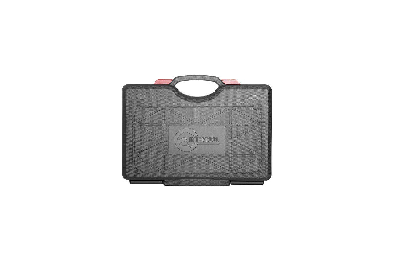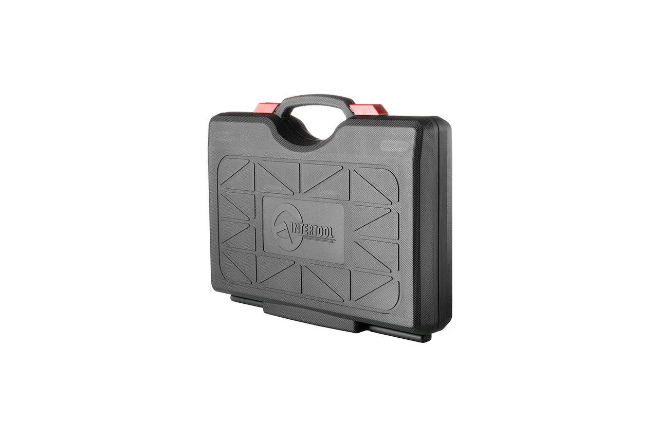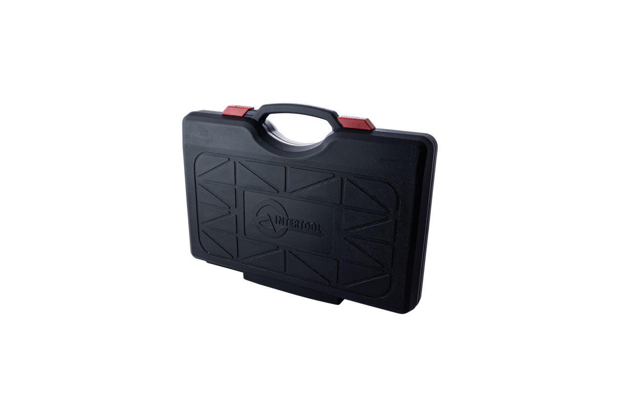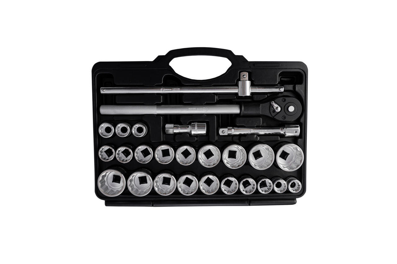 Набір включає в себе 26 одиниць з квадратом 3/4 ". Розміщений у зручному кейсі з пластика. Інструменти, які входять до складу даного набору, відрізняються великими розмірами і виключно високою якістю. У першу чергу, він стане в нагоді для ремонту великогабаритної техніки на зразок вантажівок, так як містить 12 торцевих головок великих розмірів (22 - 50 мм), а так само десять 12-ти гранних головок (7/8 "- 2"), комірець з повзунком, тріскачка з швидким скиданням і два подовжувача довжиною 100 мм і 200 мм. Виготовлені з хром-ванадієвої сталі. Габаритні розміри: 535х385х80 мм; Квадрат: 3/4 "; Кількість одиниць в наборі: 26 од .; Матеріал валізи: пластик