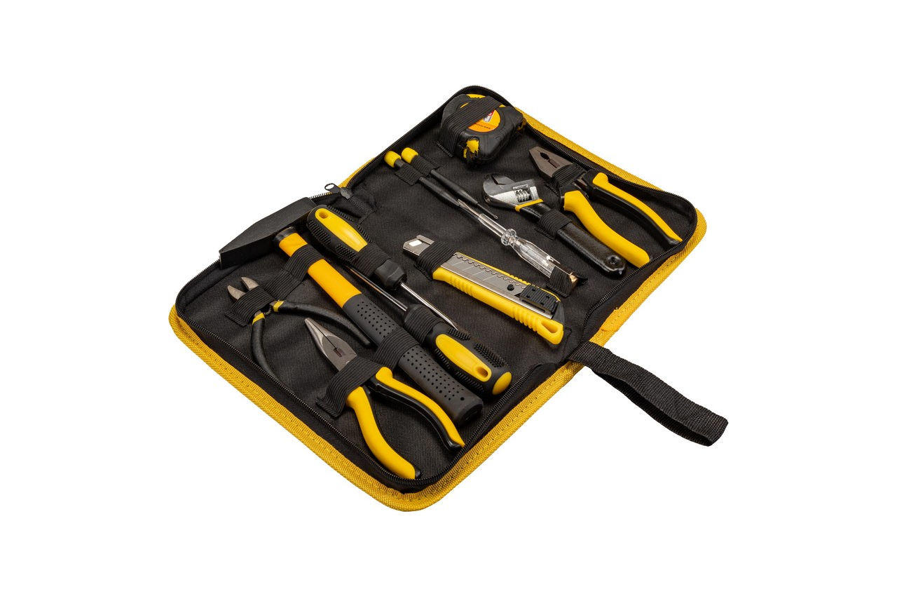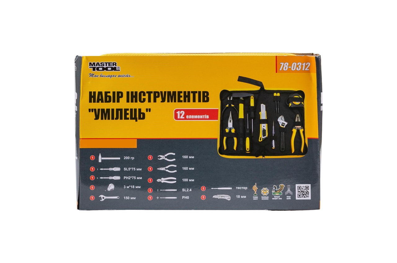 Інструментальна сталь soft кейс. Молоток 200 гр викрутка SL5 х 75 мм, викрутка PH2 х 75 мм вимірювальна рулетка 3м х 18 мм ключ розвідний 150 мм плоскогубці 160 мм щипці 160 мм бокорізи 100 мм викрутка прецизійні SL2.4, викрутка прецизійні PH0 тестер ніж пластиковий 18 мм