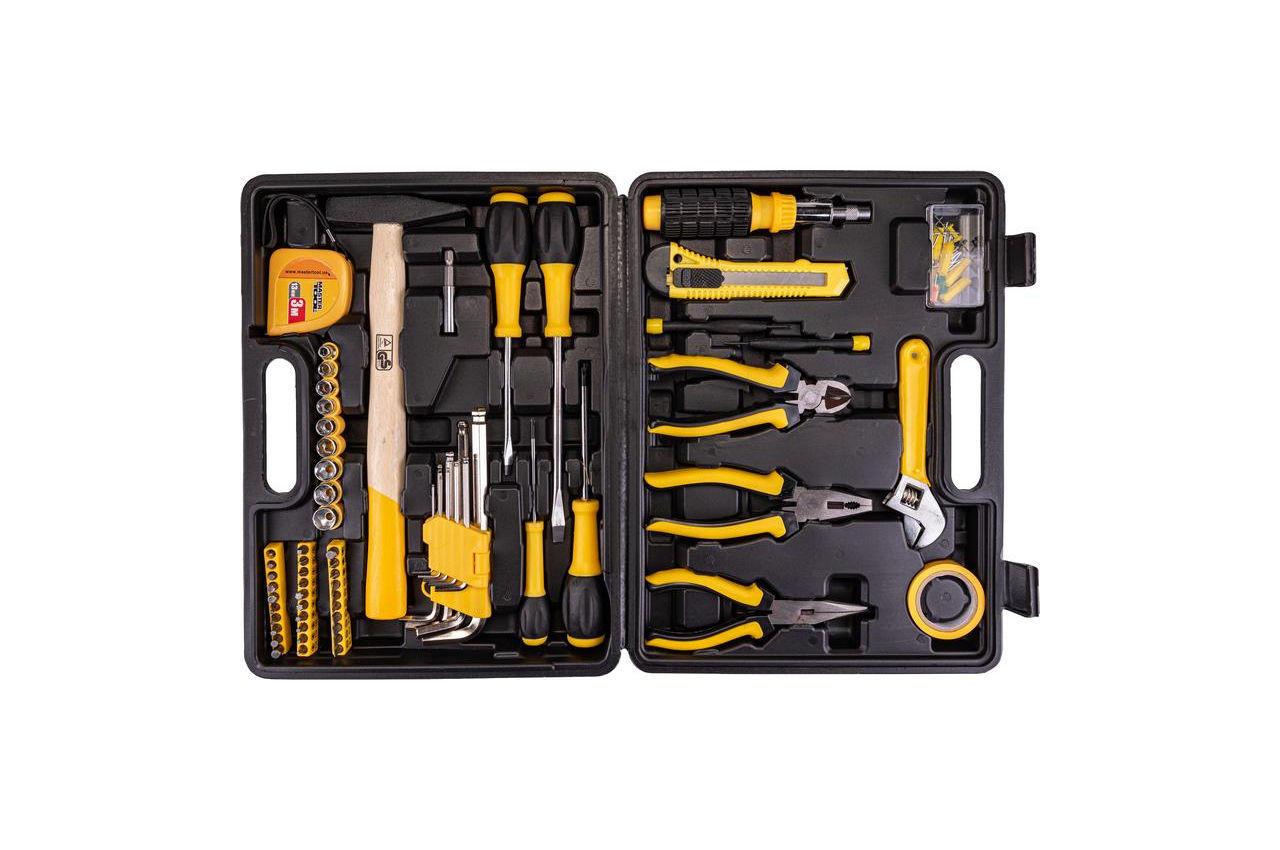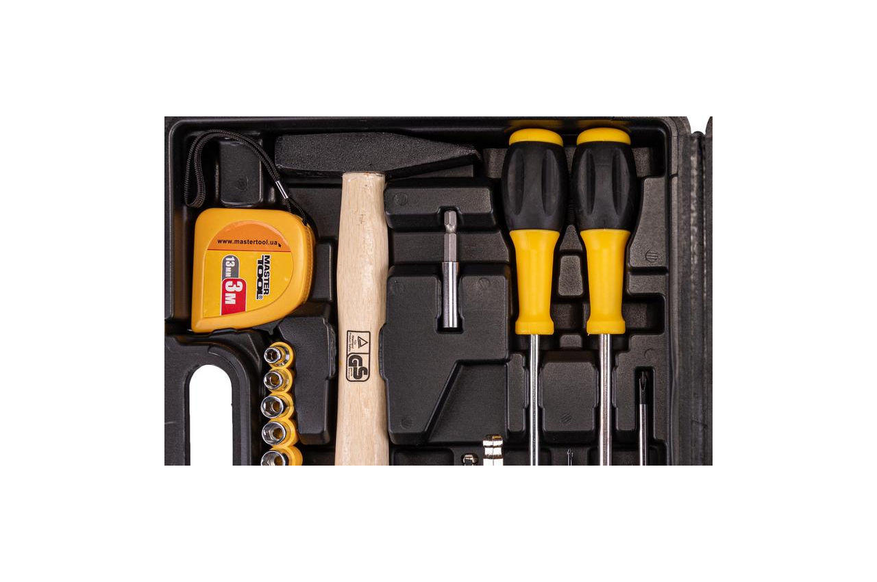 Призначений для використання в майстернях і при домашніх роботах. Комплектуючі елементи дозволяють використовувати набір при виконанні різних видів робіт. Поставляється в пластмасовому боксі.