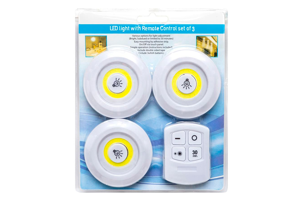 Набір із 3-х світильників з пультом дистанційного керування 2AAA 90х90х20мм