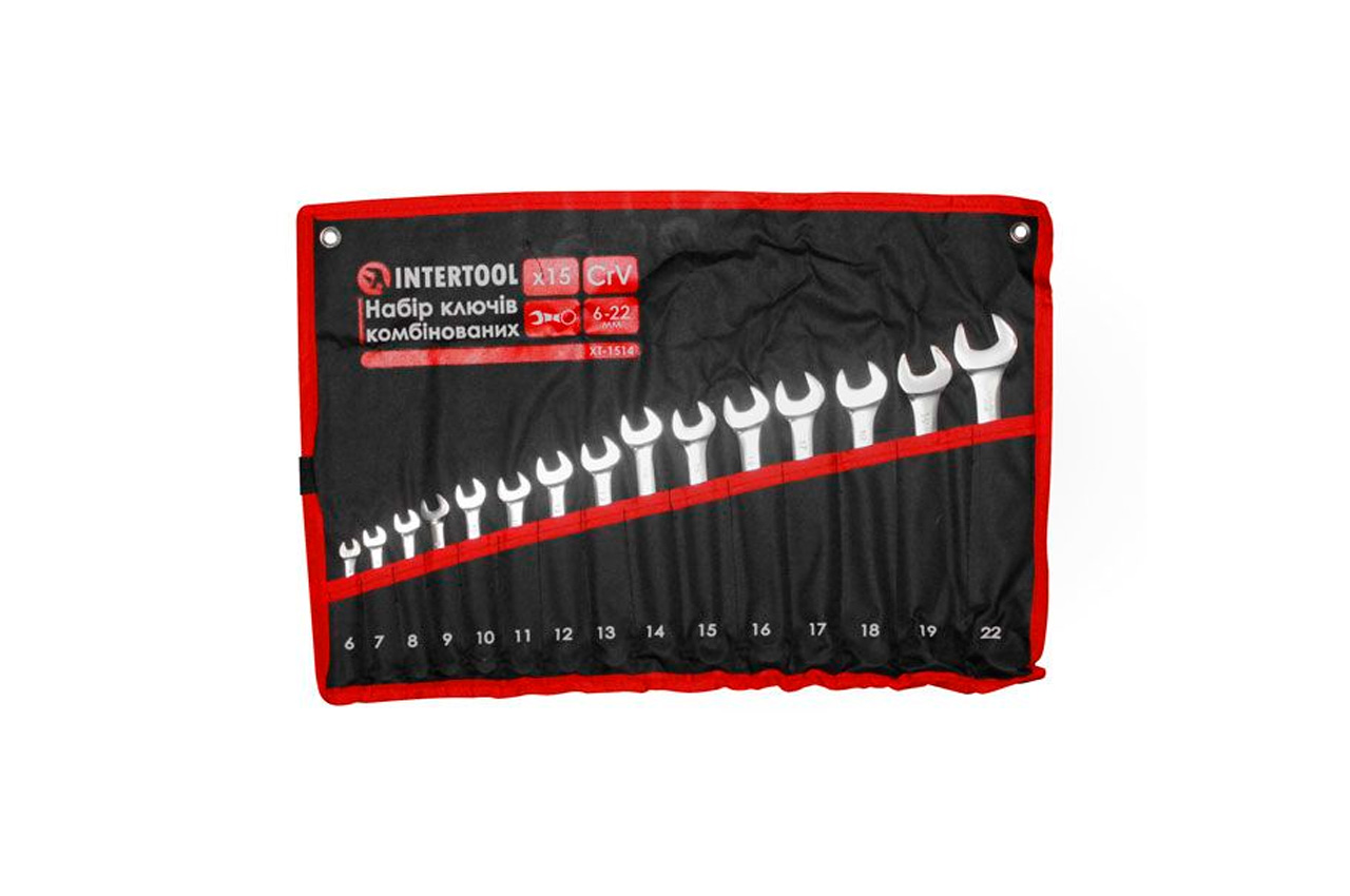 Набір ключів ріжково-накидних Intertool - 6-22мм в чохлі PRO (15шт)