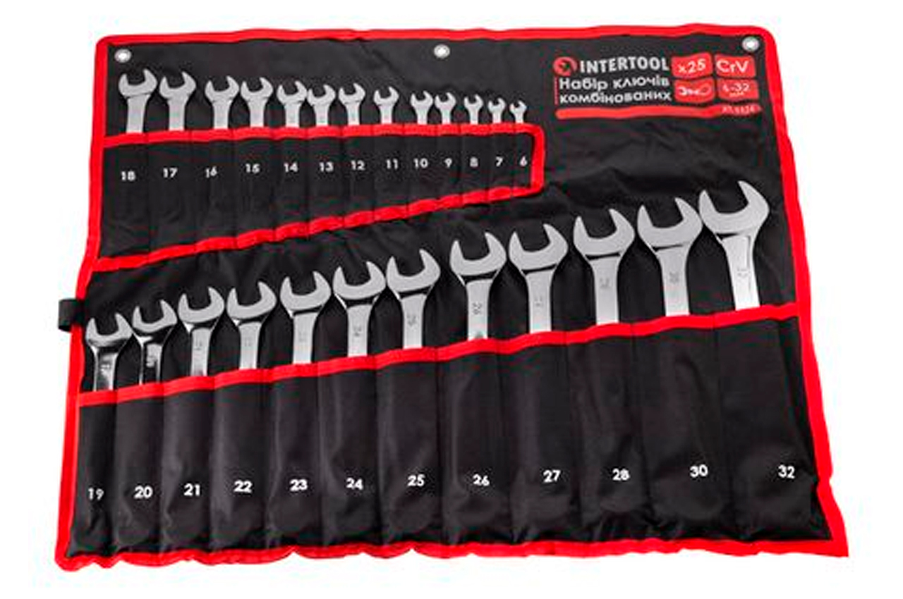 Набір ключів ріжково-накидних Intertool - 6-32мм в чохлі PRO (25шт)