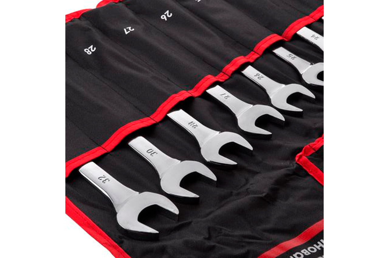 Набір ріжково-накидних ключів INTERTOOL XT-1526 із широкою комплектацією: 6-32 мм, дозволить підібрати необхідний ключ під будь-які завдання для монтажу та демонтажу різьбових з'єднань гайок та болтів. Ключі виготовлені з міцної Cr-V сталі, не схильної до руйнування, мають підвищений запас міцності. Набір поставляється в міцному нейлоновому чохлі, що компактно складається в невеликий пакунок і фіксується застібкою на липкій стрічці.