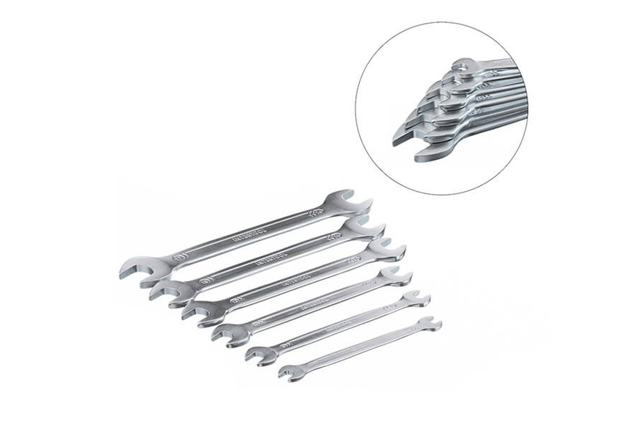 Ріжкові ключі застосовуються для монтажних і слюсарних робіт, їх широко використовують практично у всіх сферах. Вони універсальні і утилітарні, дозволяють працювати з різними кріпильними елементами. У набір XT-1101 входить 6 ключів розміром від 6 до 17 мм. Ключі виготовлені з хром-ванадієвої сталі, що обумовлює дуже високі експлуатаційні характеристики: підвищену стійкість до механічних навантажень, корозійну стійкість і твердість. Крім того, дана легована сталь має сприятливим модулем пружності, а зручна форма ключа забезпечує оптимальні умови для прикладення зусилля. Кількість ключів в наборі: 6 од .; Розміри: 6-17 мм