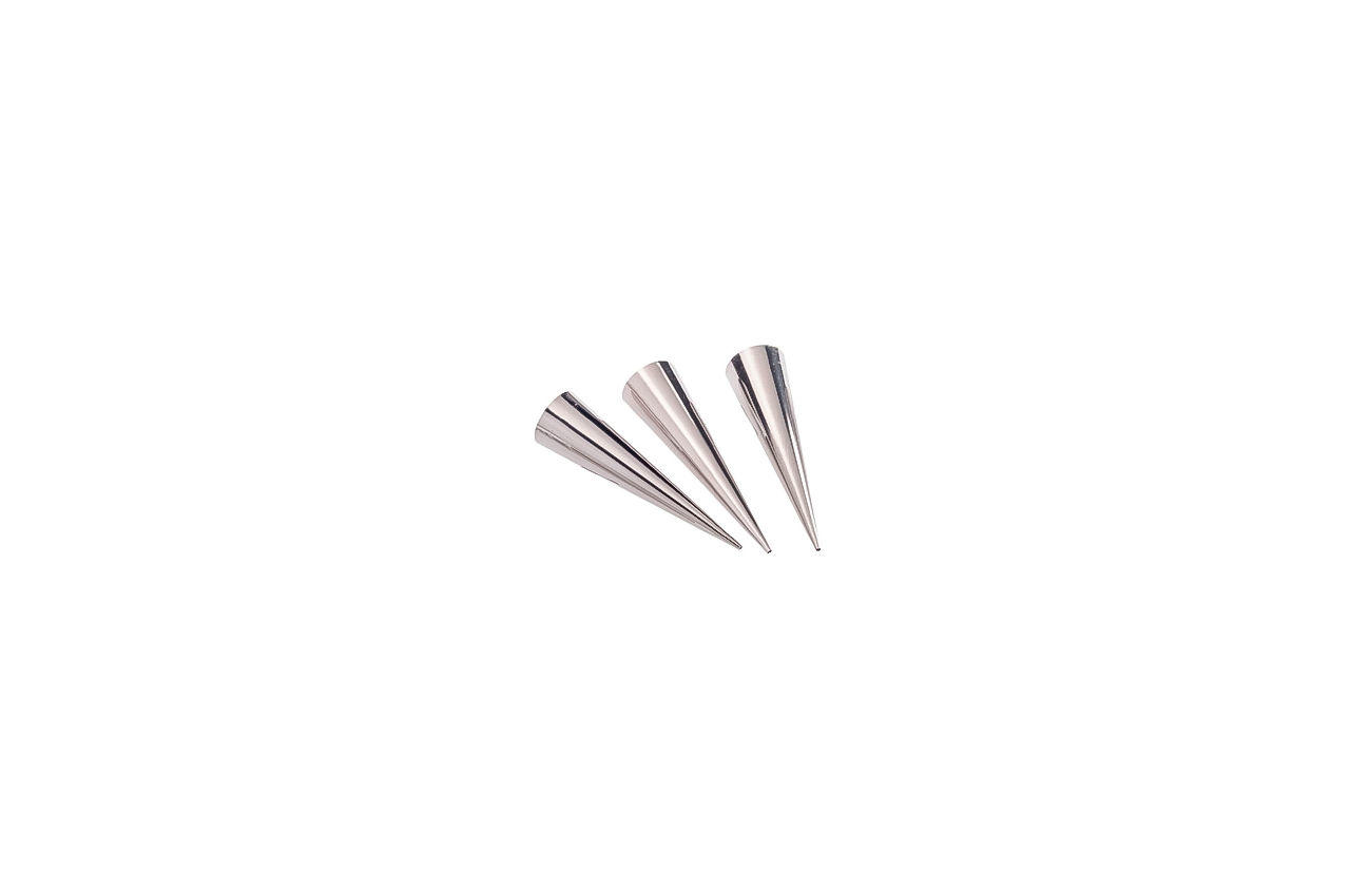 Набір конусів для листкових трубочок, круасанів і рогаликів Empire довжиною 115 мм -для кондитерів-аматорів. Інструменти виготовлені з харчової нержавіючої сталі з підвищеною стійкістю до окислення. Вони набагато міцніше пластикових аналогів і, на відміну від останніх, які не забарвлюються продуктами. Верхній діаметр дорівнює 36 мм, нижній - 0,4 см.в наборі - 6 штук. Завдяки їх твердої структурі десерти виходять ідеально рівними, а за смаком вони нерідко перевершують ресторанні ласощі.