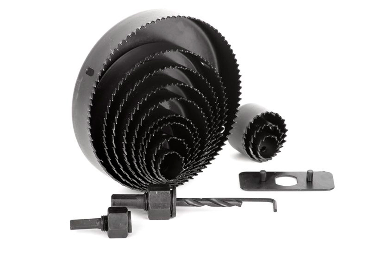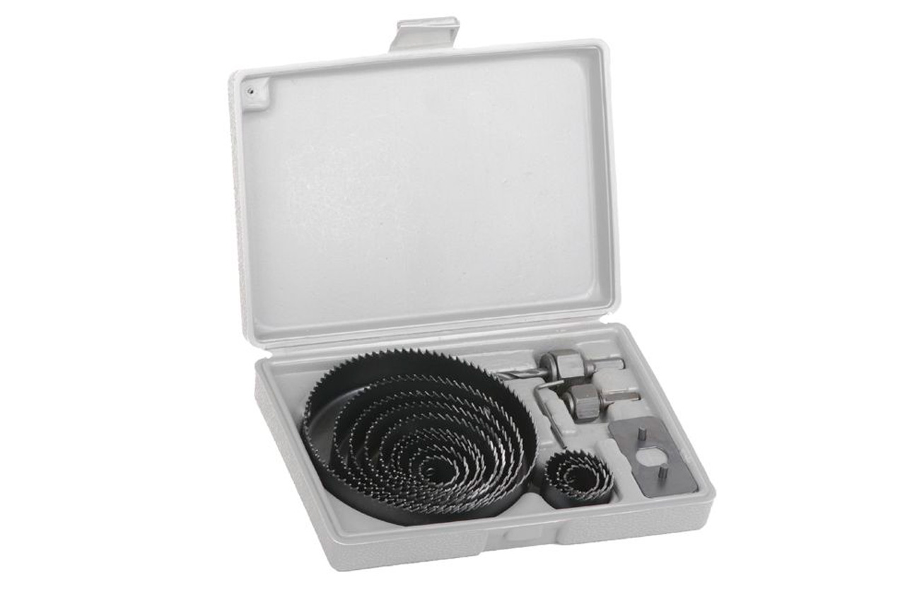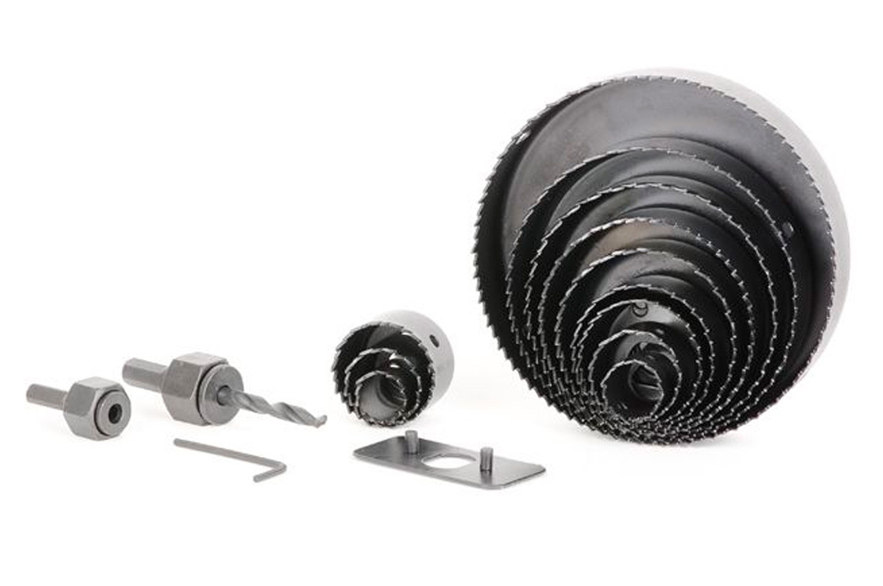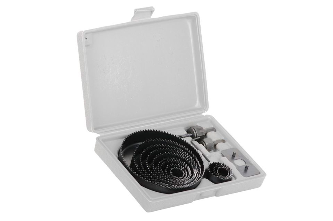 Набір корончастих свердел (фрез), призначений для свердління наскрізних отворів діаметром від 19 до 127 мм, в деревині і її похідних, а також в пластиці і гіпсокартоні. За допомогою цього набору Ви легко просвердлите отвори потрібного Вам діаметру: під розетки, дверні замки або проходи для комунікації. У комплект набору входить два тримачі: Тримач з напрямних свердлом і опорним підставою для коронок діаметром 32-127 мм; Тримач без центрує свердла для коронок 19, 22, 29 мм. У наборі 12 корончастих фрез виготовлених з високоякісної інструментальної сталі. Завдяки цьому ріжучакромка не деформується і довго залишається гострою. Виконайте один пропив, і ви відчуєте наскільки якісний інструмент у вас в руках. Так само якість пропилу збільшується, завдяки кроці і розводці зубів. Що спрямовує свердло не дає коронки йти в сторону і дозволяє робити рівні контрольовані отвори. Все коронки упаковані в пластиковий кейс із засувкою, завжди знаходяться на своїх місцях і не губляться при роботі. Ви легко знайдете місце для зберігання кейса т.к у нього компактний розмір. Робіть ремонт з набором коронок по дереву легко і швидко. Особливості Легко випилює отвори в деревині, пластику і гіпсокартоні, завдяки спеціальним кутах нахилу і розводці зубів. Ви отримуєте рівне отвір завдяки направляючої свердла. Ріжуча кромка витримує великі навантаження без деформації, виготовлена з міцної інструментальної сталі. Коронки завжди під рукою тому зберігаються в надійному кейсі невеликого розміру. Діаметр коронок: 19, 22, 29, 32, 38, 44, 54, 64, 76, 89, 102, 127; Кількість коронок: 12 од .; Застосування: пластик і дерево