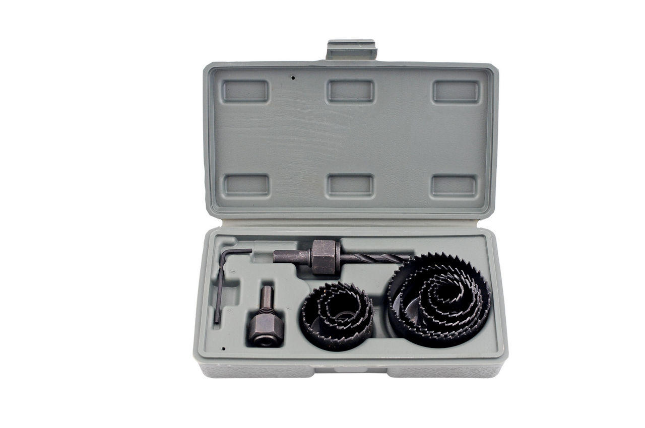 Набір корончастих свердел по дереву "HouseTools". Діаметр свердел: 19, 22, 29, 32, 38, 44, 51 і 64 мм. Глибина свердління - 25 мм. Набір їх 11-ти предметів поставляється в пластиковому кейсі.