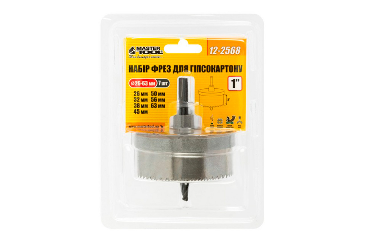 Набір корончастих свердел по гіпсокартону Mastertool - 7 шт. (25-64 x 20 мм)