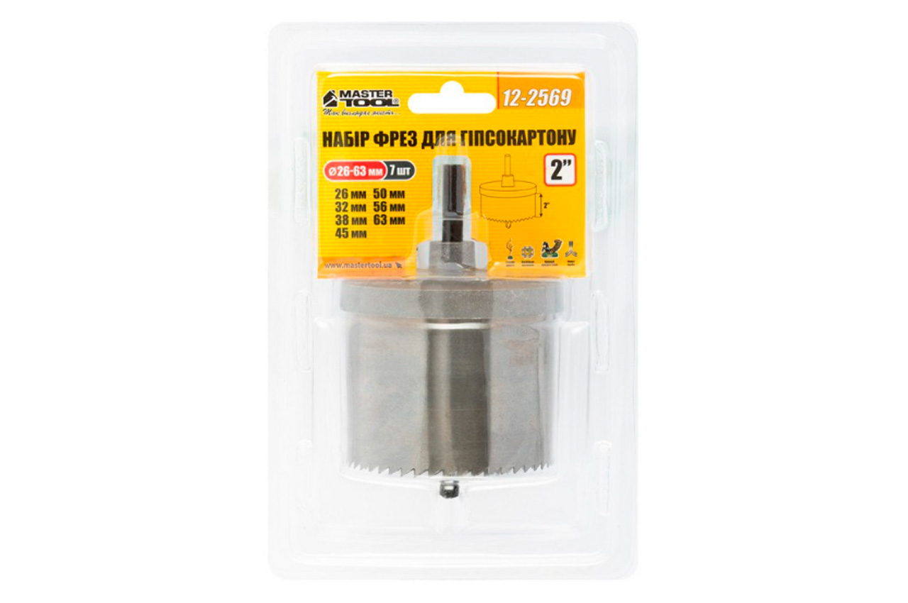 Набір корончастих свердел по гіпсокартону Mastertool - 7 шт. (25-64 x 43 мм) подовжені