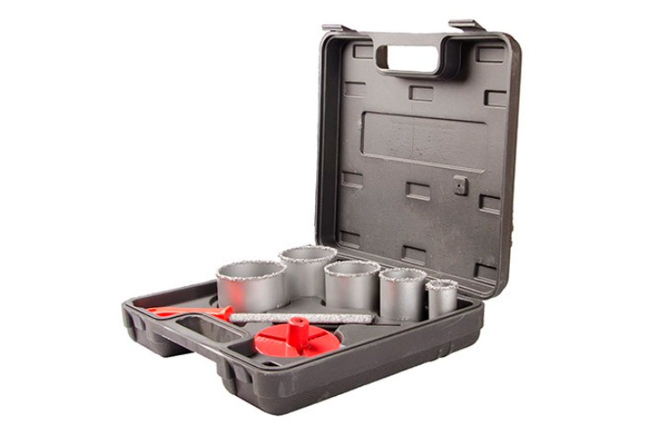 Набір корончастих свердел по плитці "Granite" - 5 шт. (33, 53, 67, 73, 83 мм). Використовуються для монтажу розеток, розподільних коробок, світильників на стелю.