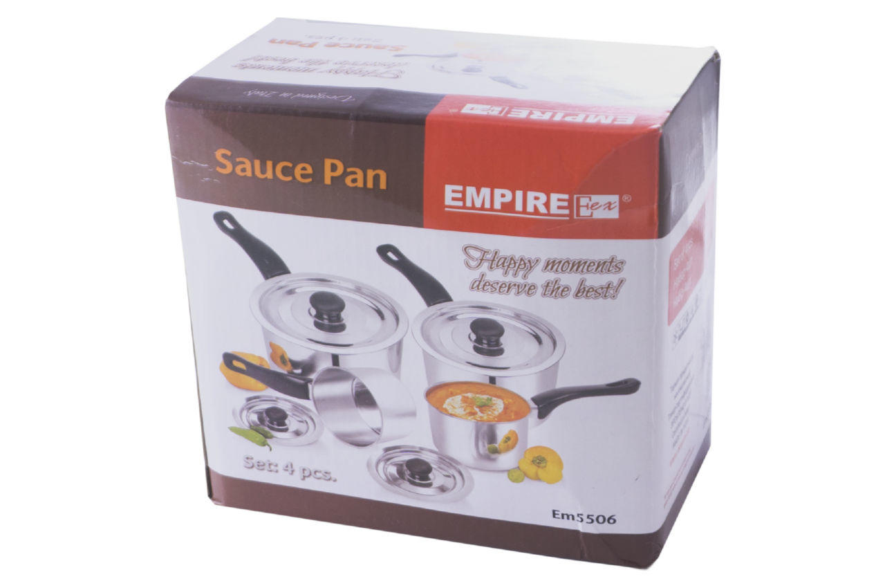 Набір ковшів нержавіючих Empire - 0,55 л x 0,75 x 1.1 x 1,35 л (4 шт.) Якісний елемент посуду, призначений для побутового та професійного використання. Переваги товару: товар виготовлений з безпечних матеріалів, не виділяє токсичні речовини і запахи, не має відколів і інших пошкоджень. підходить для багаторазового використання.