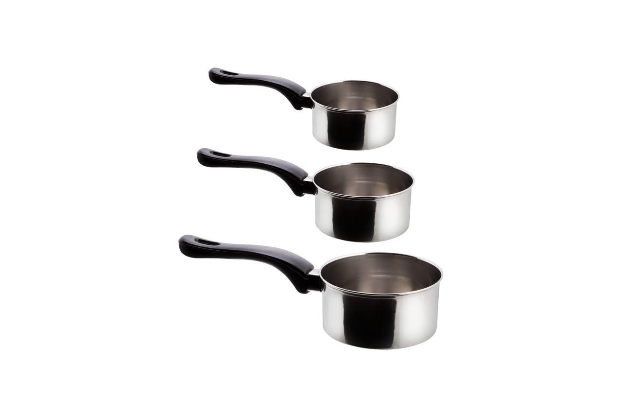Набір ковшів нержавіючих Empire - 0,75 x 1 x 1,2 л (3 шт.) Якісний елемент посуду, призначений для побутового та професійного використання. Переваги товару: товар виготовлений з безпечних матеріалів, не виділяє токсичні речовини і запахи, не має відколів і інших пошкоджень. підходить для багаторазового використання.