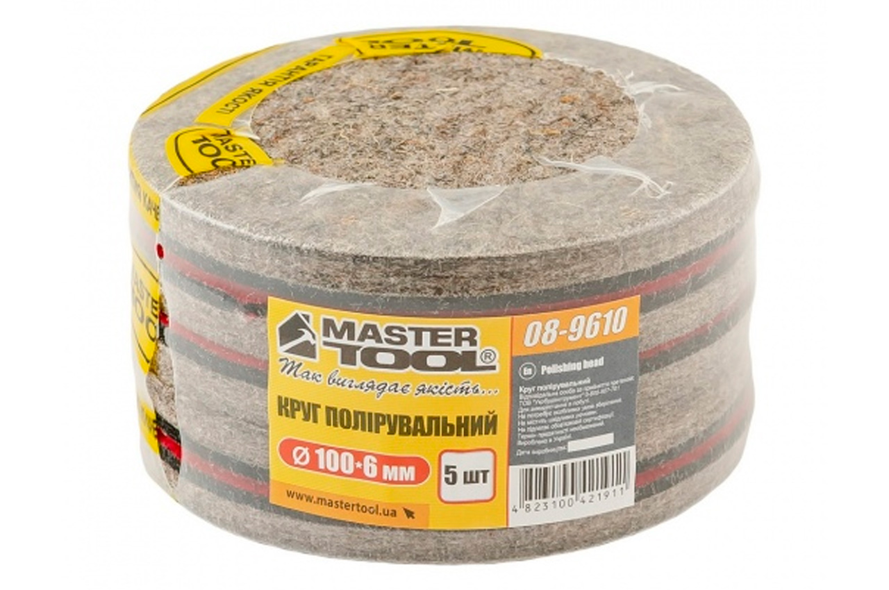 Набір кругів повстяних на липучці Mastertool - 100 x 6мм жорсткий (5шт)