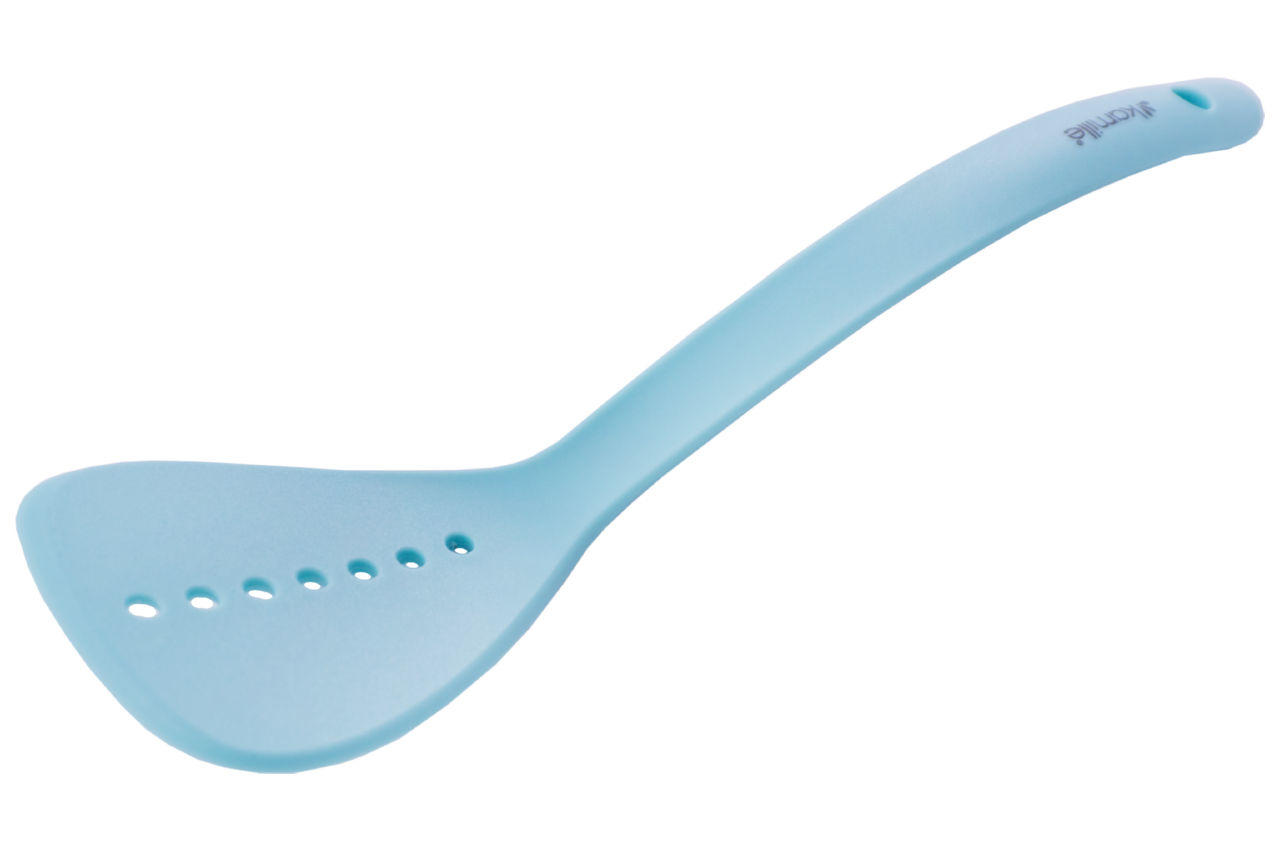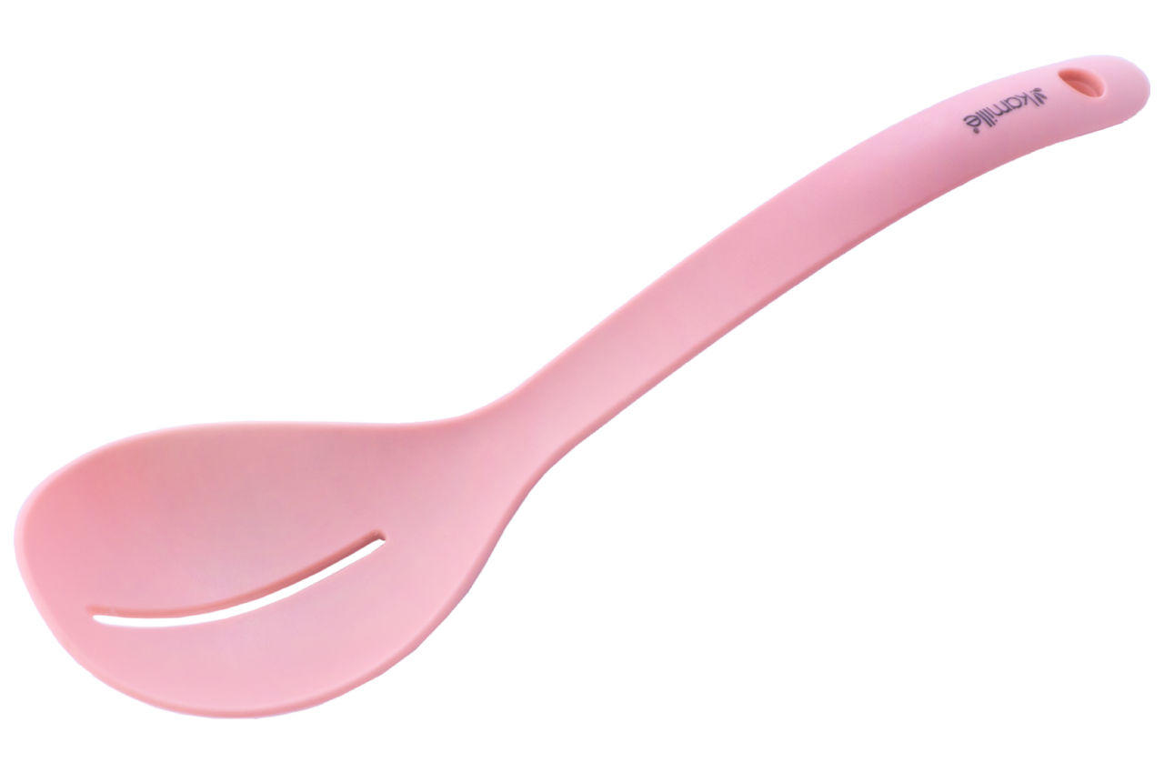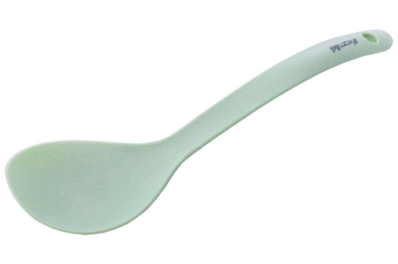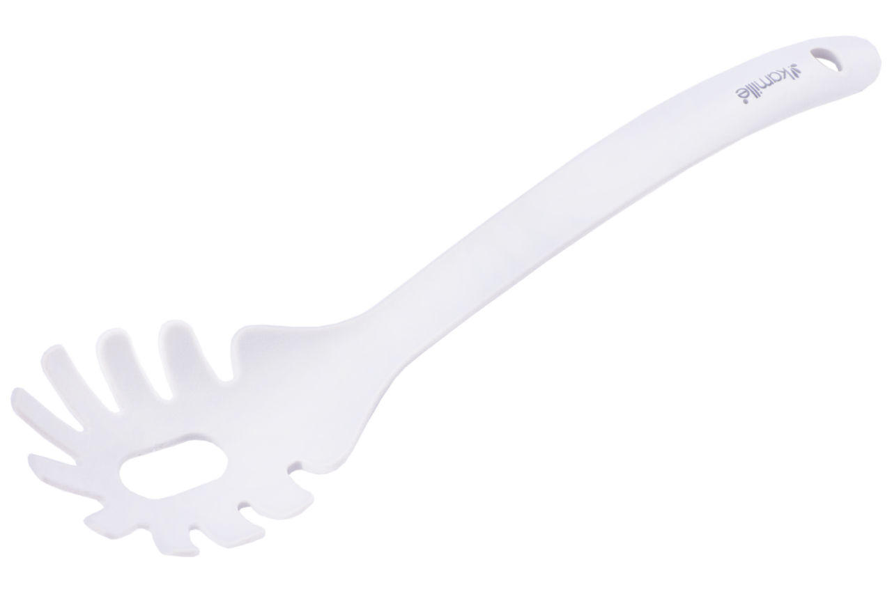 Набір кухонний Kamille - це надійність, практичність та неповторний дизайн. Кухонне приладдя виконане з високоякісним нейлоновим покриттям із застосуванням сучасних технологій виробництва та абсолютно безпечне для здоров'я людини. Набір: кухонне начиння. 1) Половник 32,5 х10 см. Колір: чорний. 2) Ложка з прорізами 32х7, 8 см. Колір: ніжний рожевий. 3) Ложка кухарська 32х7, 8 см. Колір: салатовий. 4) Ложка для спагетті 32х7, 8 см. Колір: сірий. 5) Лопатка з прорізами 31,5 х8 см. Колір: блакитний.