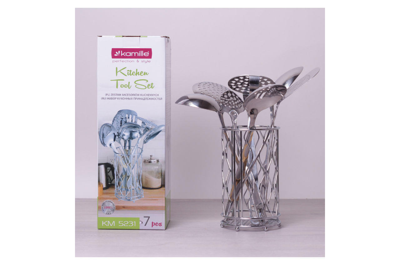 Набір кухонний Kamille - це надійність, практичність і неповторний дизайн. Кухонні приналежності виконані з високоякісної нержавіючої сталі з застосуванням сучасних технологій виробництва і абсолютно безпечні для здоров'я людини.