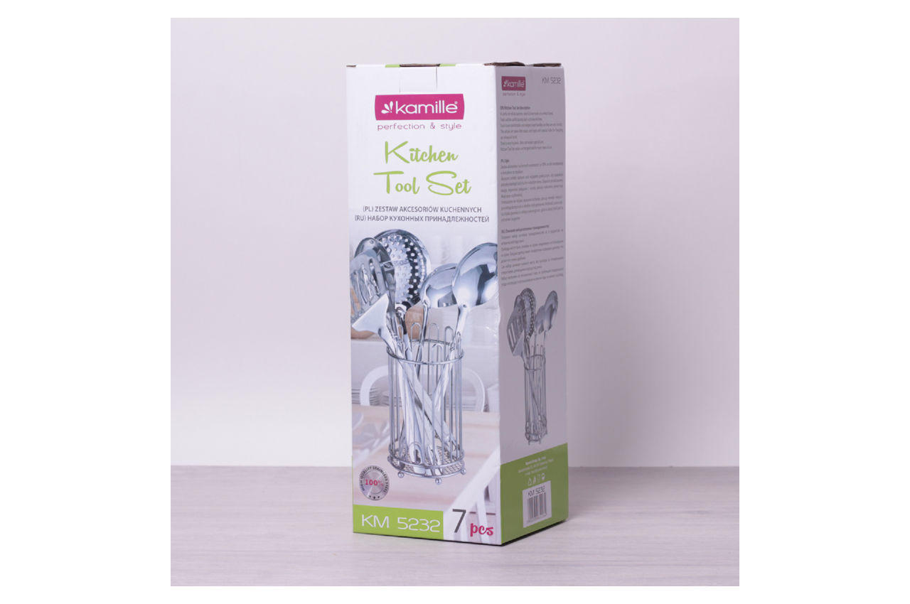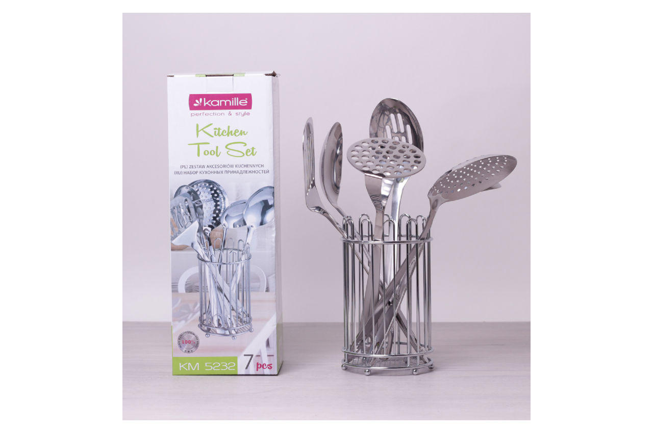 Набір кухонний Kamille - це надійність, практичність і неповторний дизайн. Кухонні приналежності виконані з високоякісної нержавіючої сталі з застосуванням сучасних технологій виробництва і абсолютно безпечні для здоров'я людини.