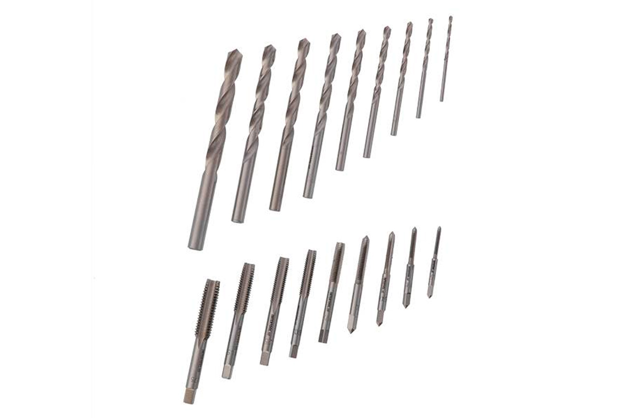 Набір мітчиків та свердел призначений для нарізання внутрішніх метричних різьб, а також попереднього просвердлювання металу. Діаметр свердел підібраний під розмір мітчиків. Використовуються для калібрування, відновлення та ремонту пошкоджених ділянок різьби. При нарізанні обов'язково використовуйте змащувальне мастило. Такий набір різьбонарізного інструменту відмінно підійде для слюсарів, домашніх майстрів та автомеханіків. Комплектація Мітчики: М3х0.5, М4х0.7, М5х0.8, М6х1.0, М7х1.0, М8х1.25, М9х1.25, М10х1.5, М12х1.75; Свердла: 2.5, 3.3, 4.2, 5.0, 6.0, 6.8, 7.8, 8.6, 10.3.