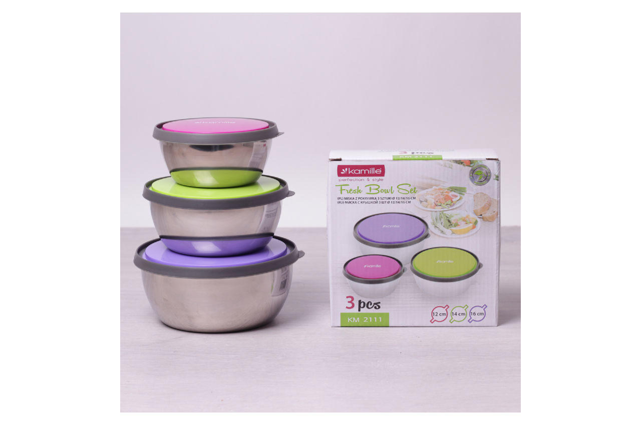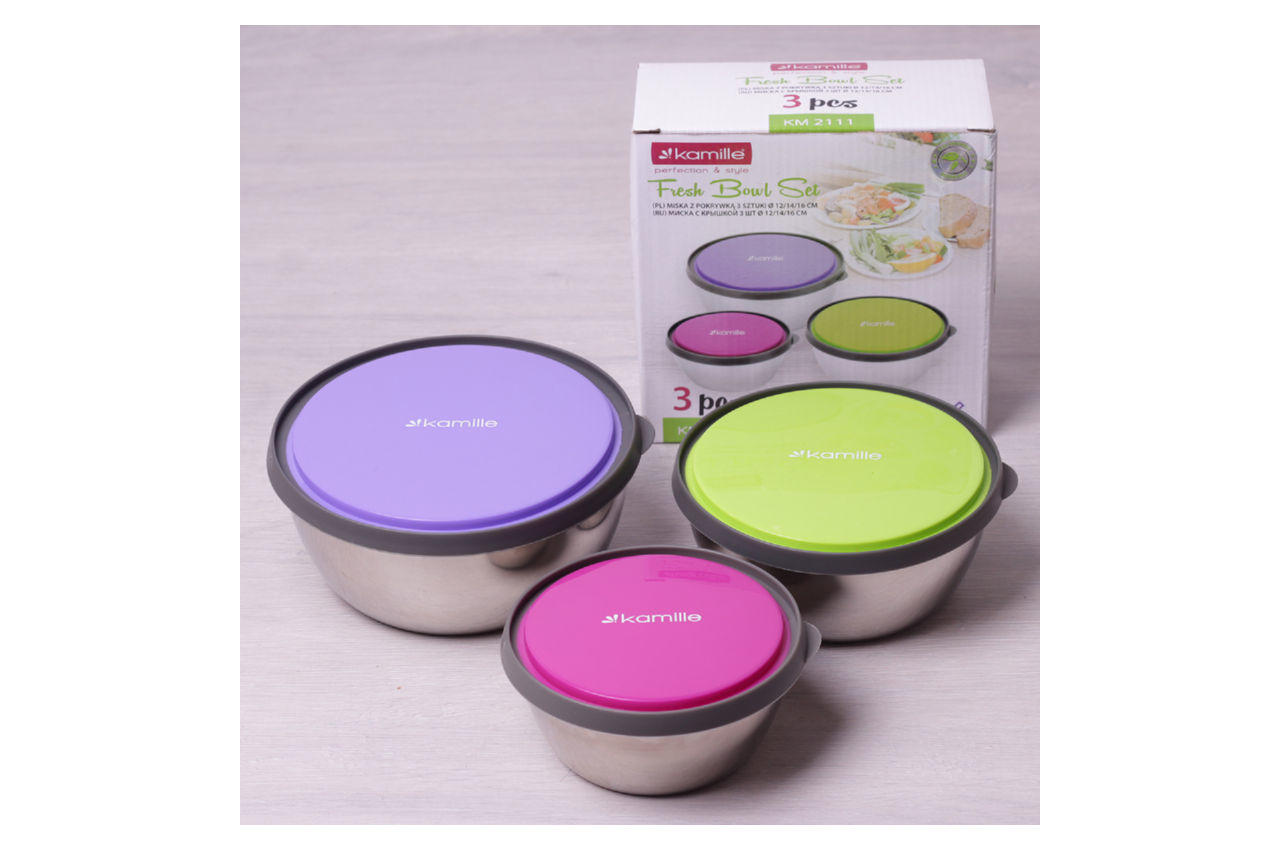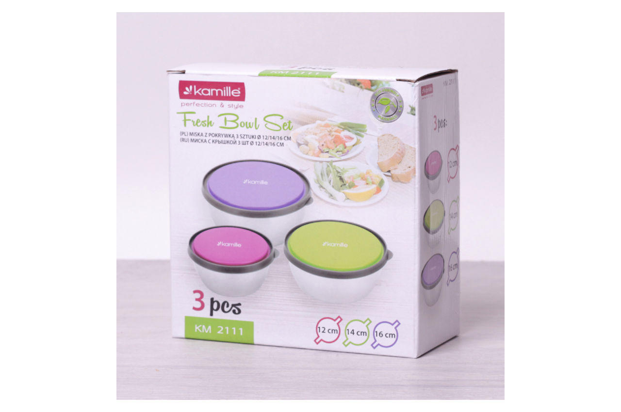 Набір мисок нержавіючих Kamille - 120 x 140 x 160 мм з кришками