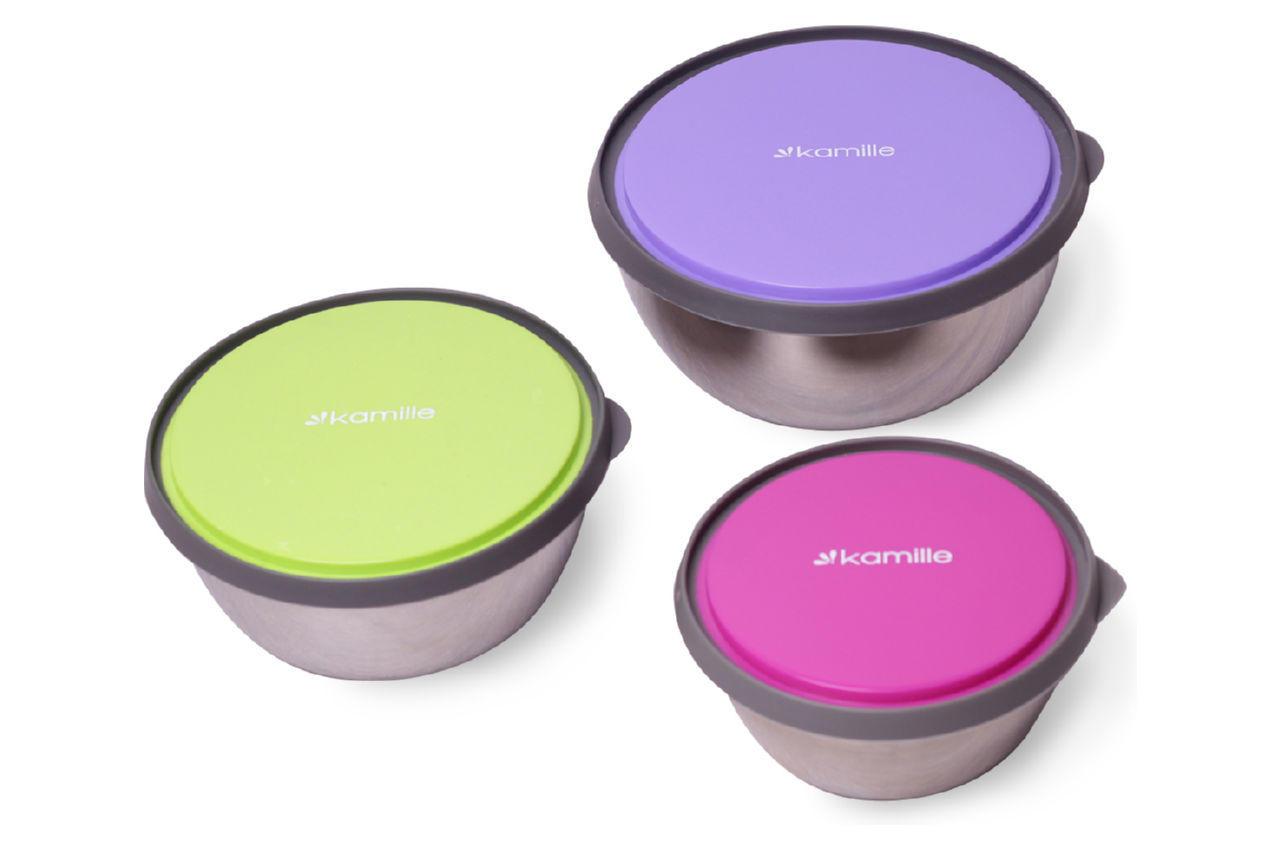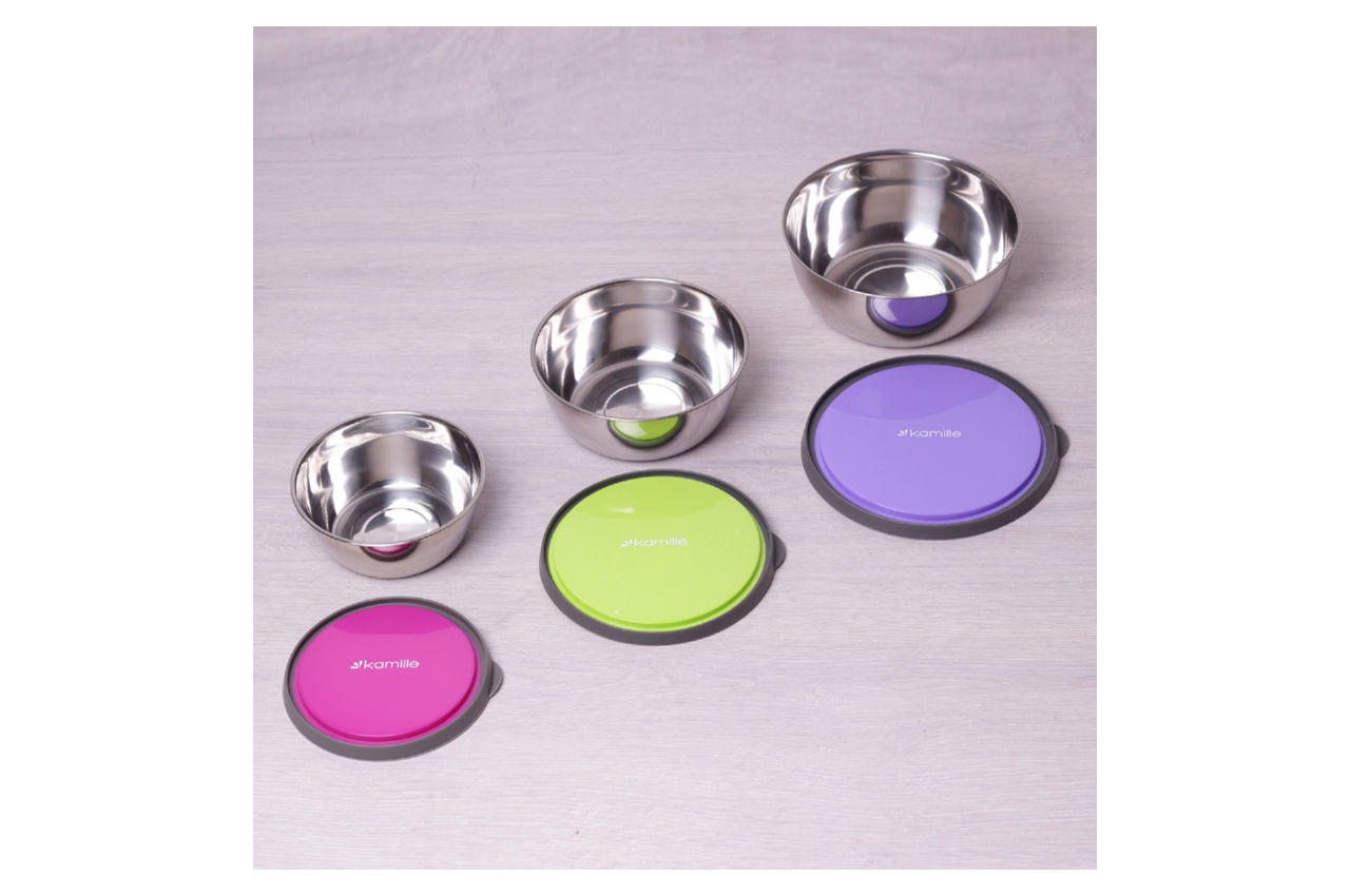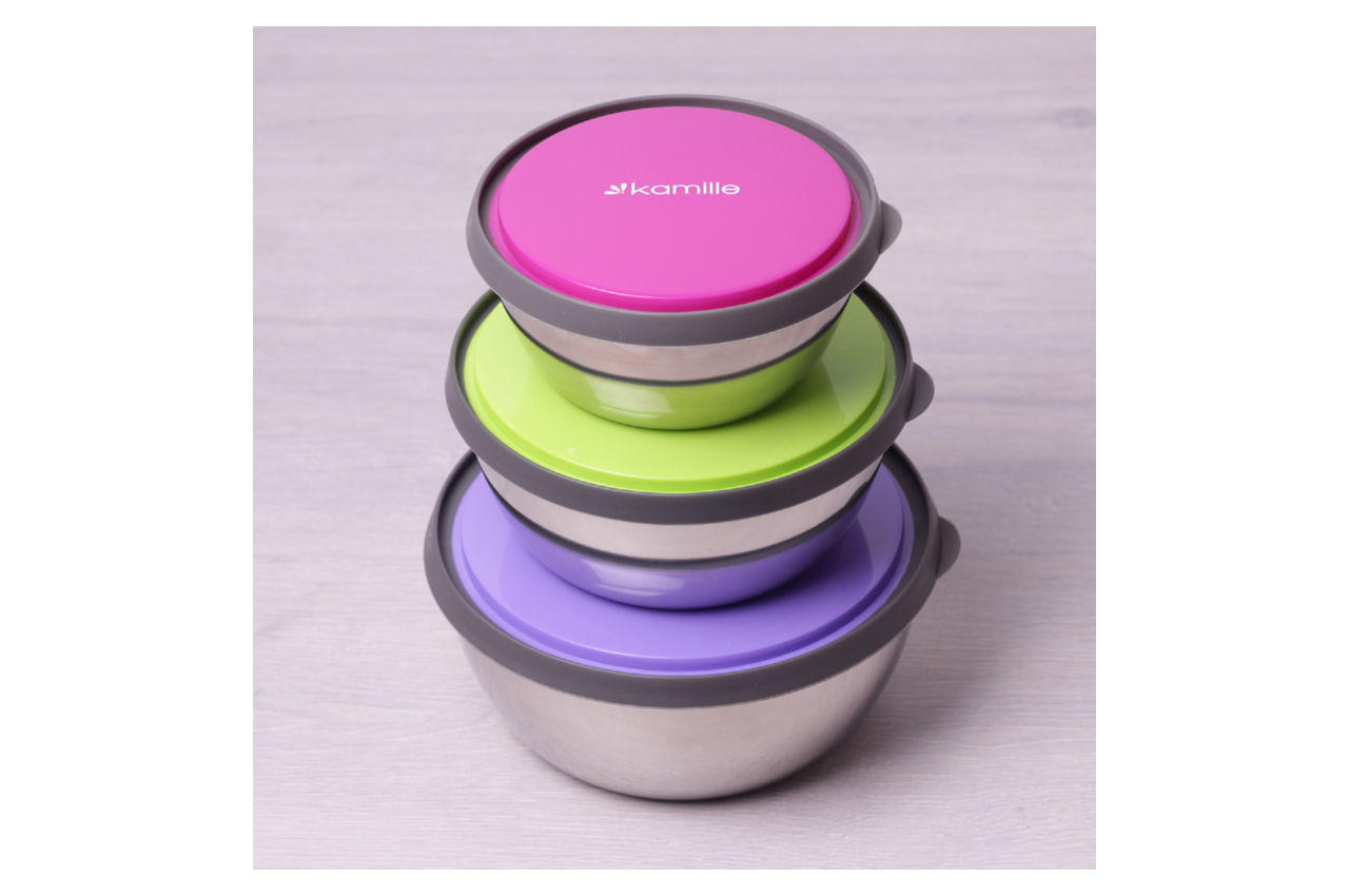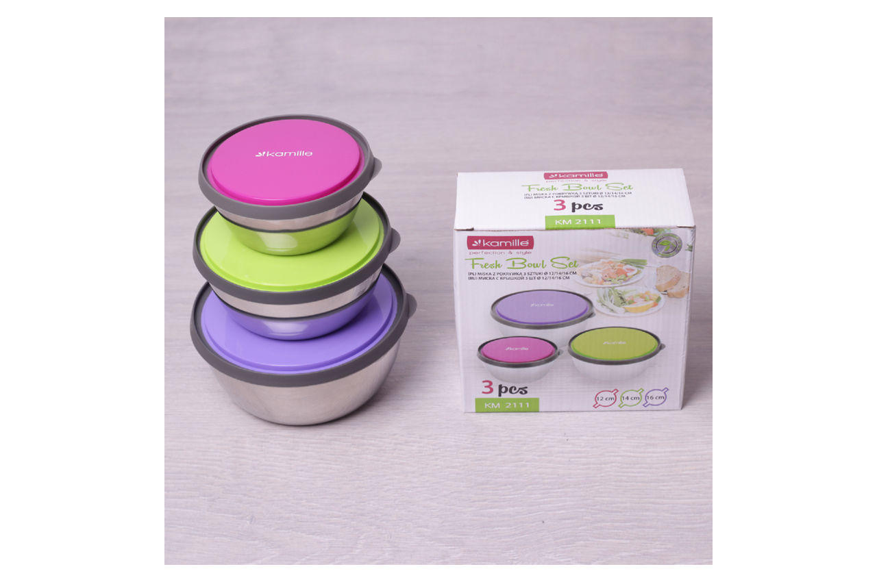 Набір мисок нержавіючих Kamille - 120 x 140 x 160 мм з кришками