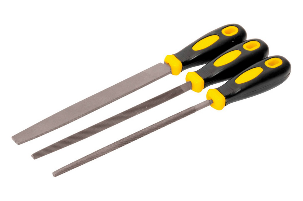 Призначені для зачистки увігнутих і плоских поверхонь, а також великих отворів. У набір з 3-х шт. входять напилки з плоским, квадратним і тригранним профілем.