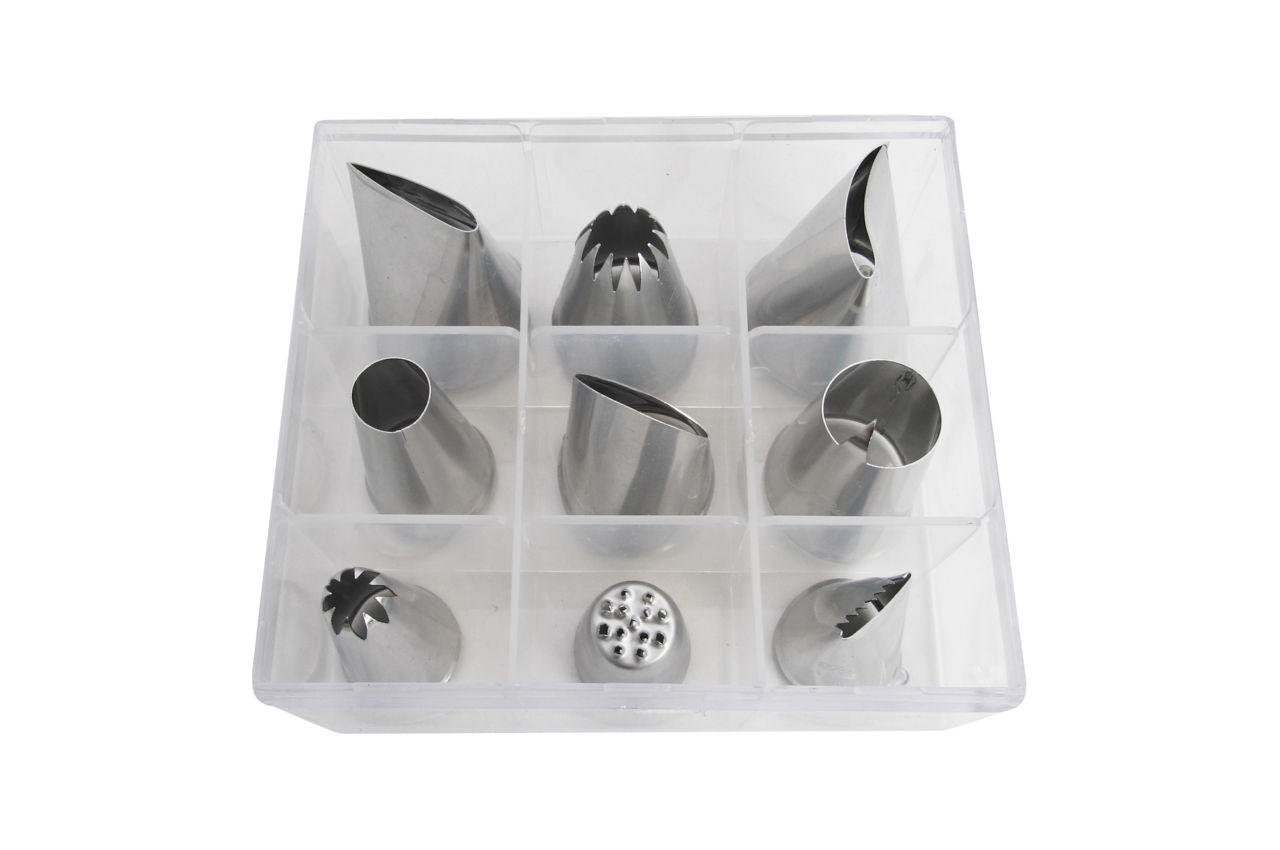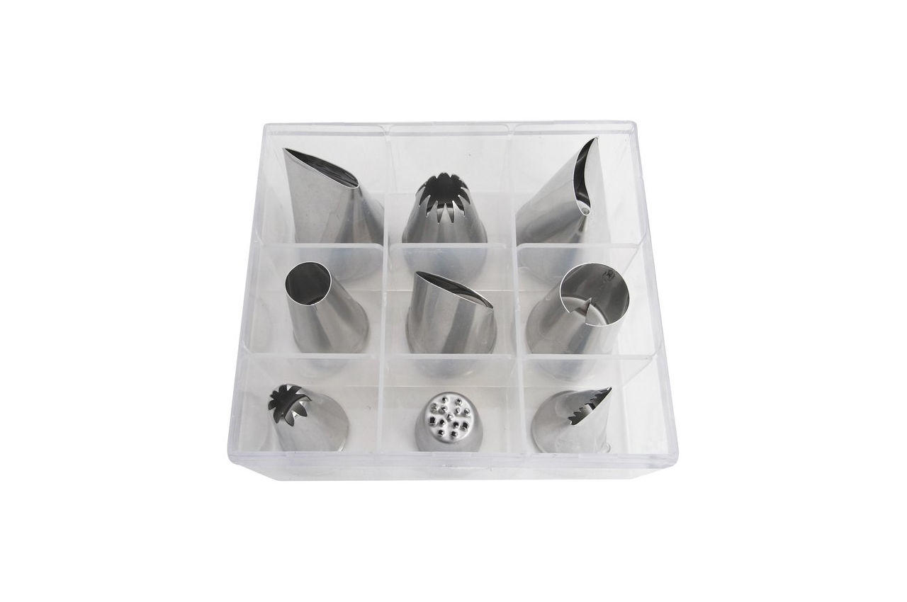 Набір насадок кондитерських Empire в допомогу початківцям кулінарам і професіоналам зі стажем. З їх допомогою майстра створюють кремові прикраси для мафінів, тістечок і тортів. Всі 9 елементів виготовлені з високоміцної нержавіючої сталі. Матюкав не схильний до корозії, а виразний рельєф вихідного отвору дає зелене світло найбільш незвичайним композиціям. Не менш важливою перевагою металевих насадок Empire над пластиковими аналогами вважається краща стійкість до ударів і подряпин.